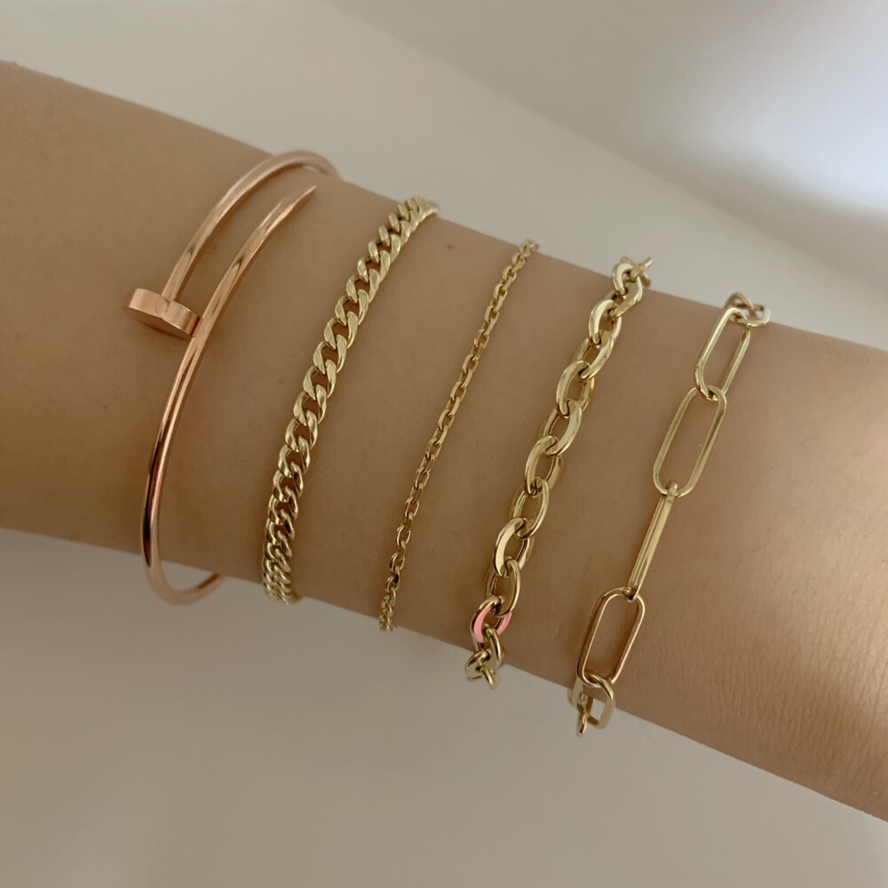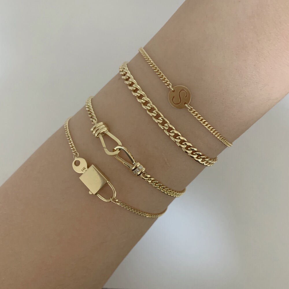 14K/18K 할로우 커브 체인 팔찌 3.6mm