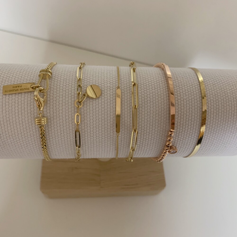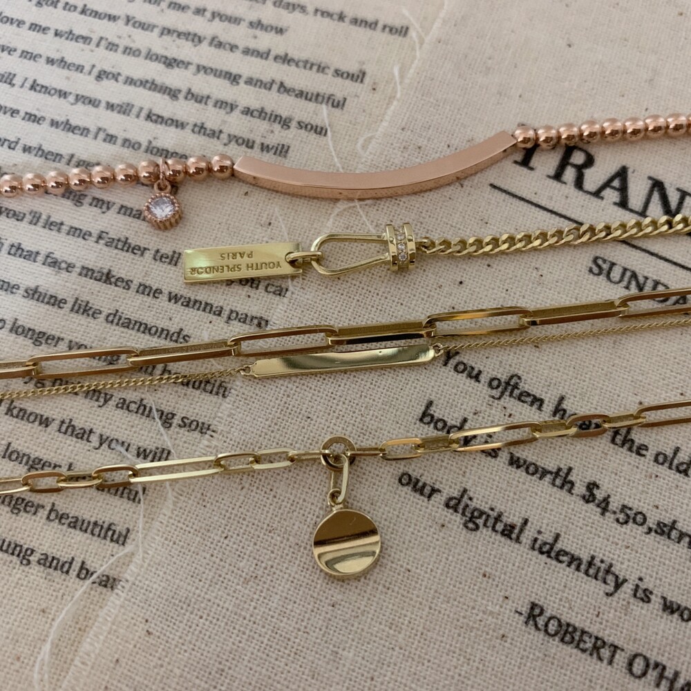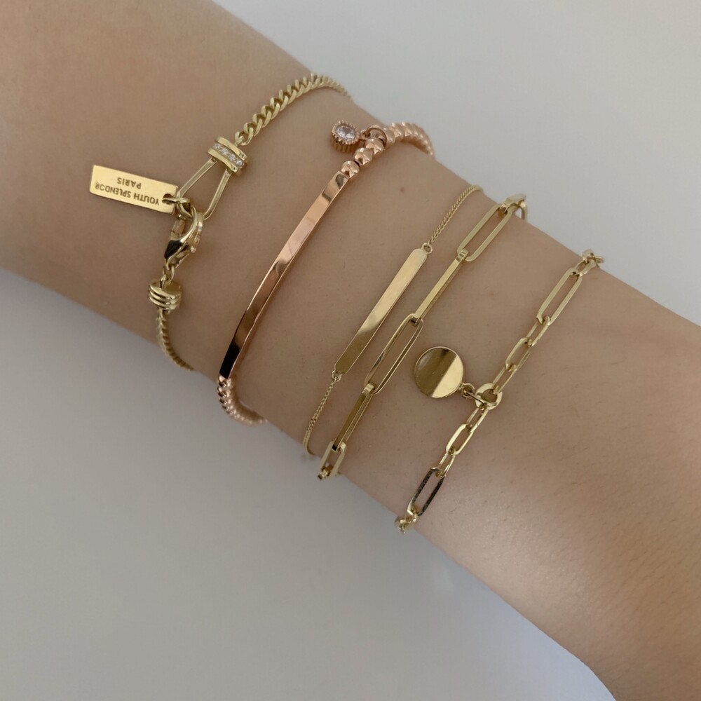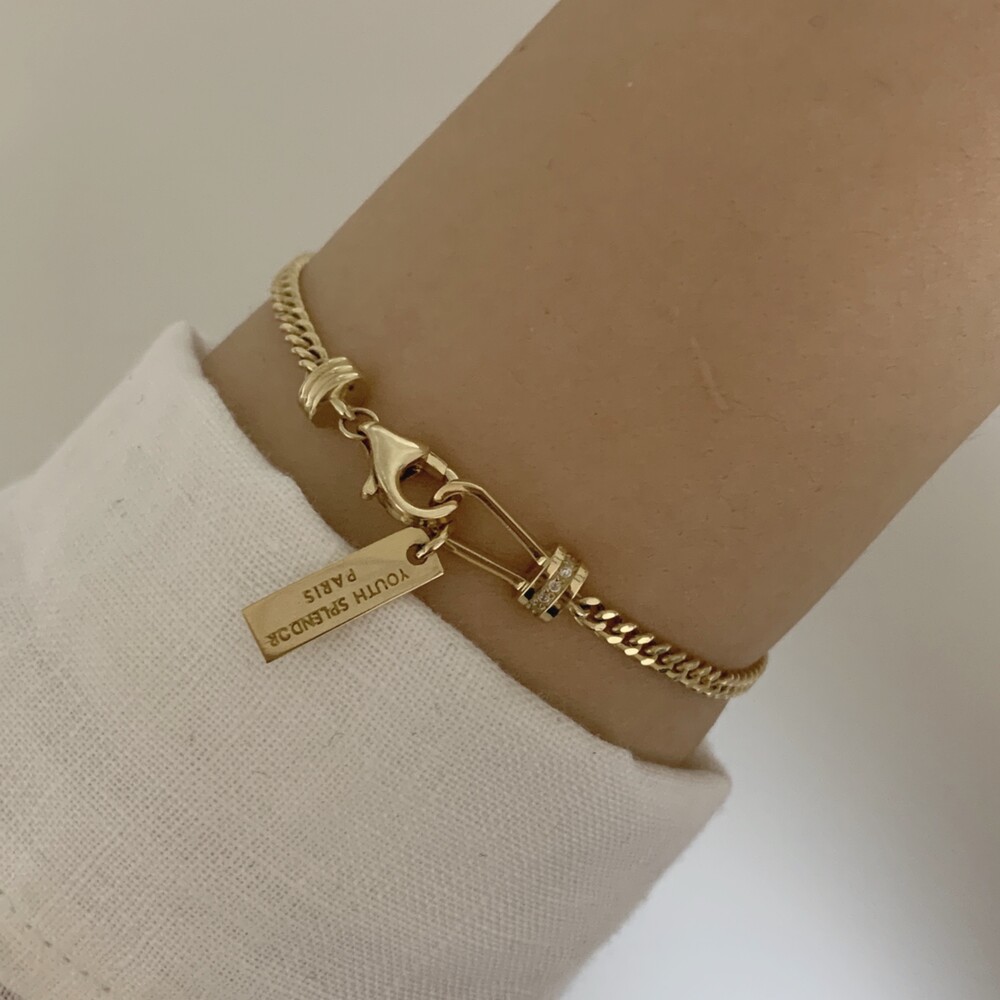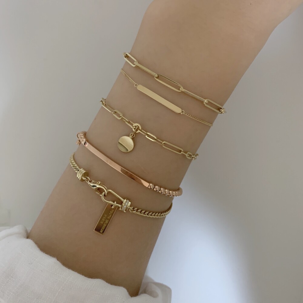 14K/18K 스퀘어 스틱 포인트 커브 체인 팔찌