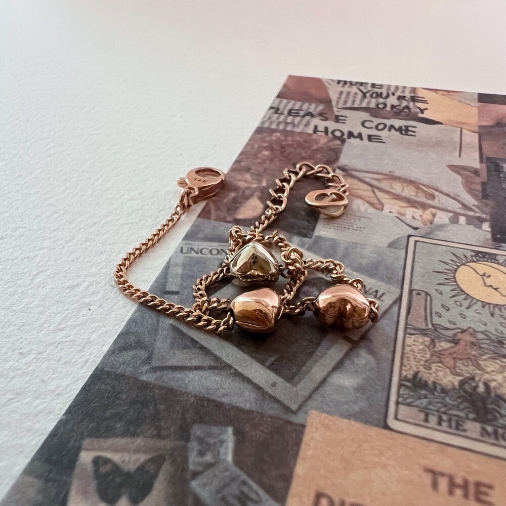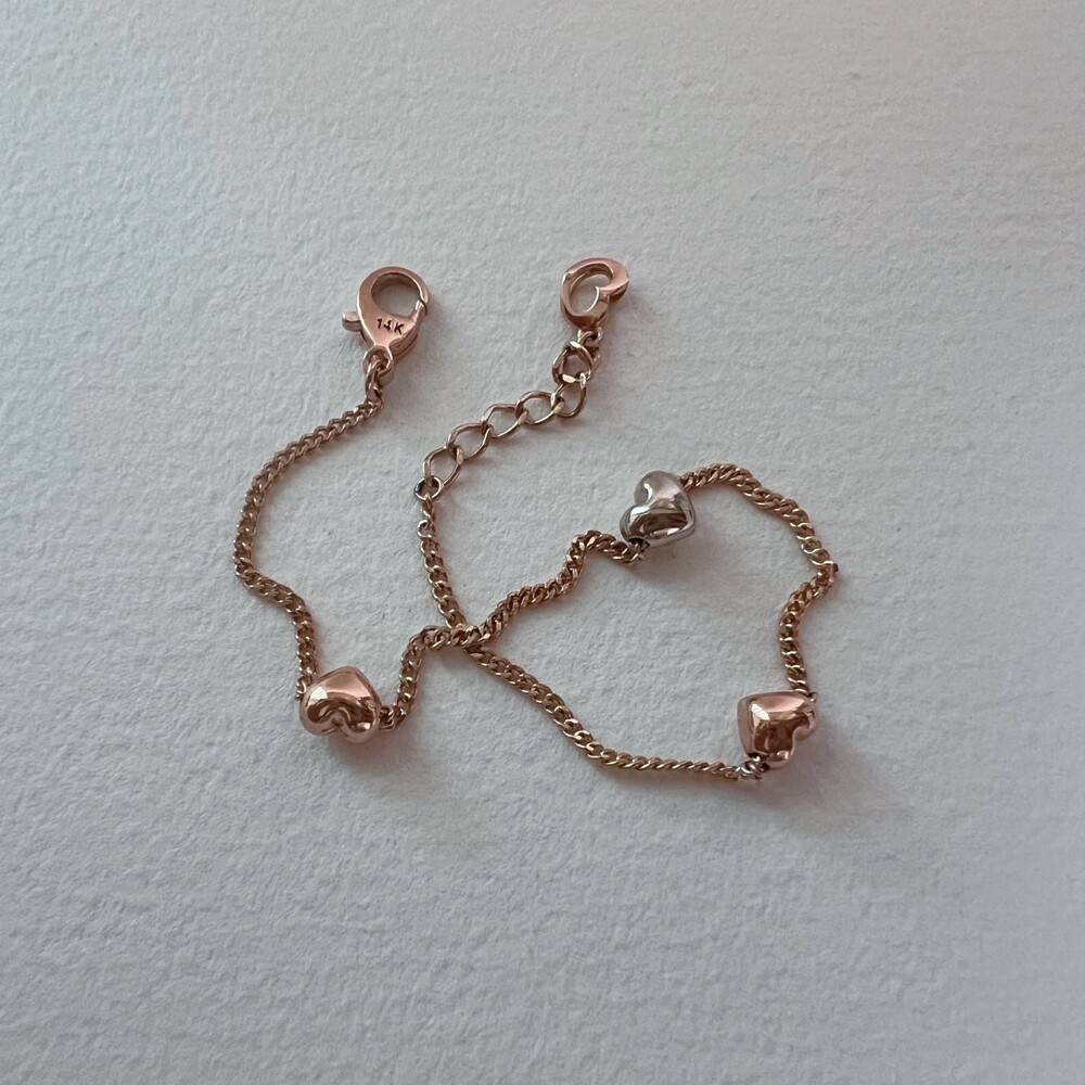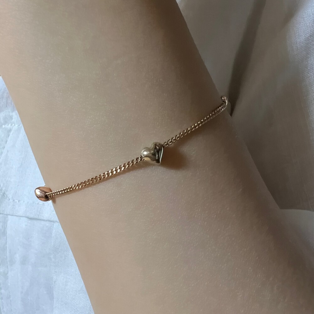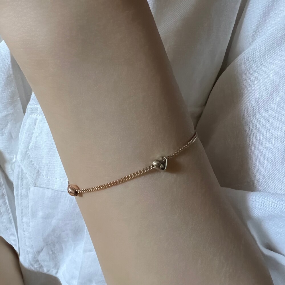 14K/18K 2:1 컬러 믹스 미니 통통 하트 팔찌