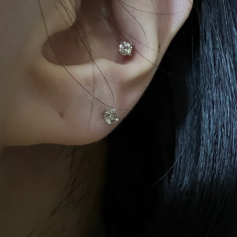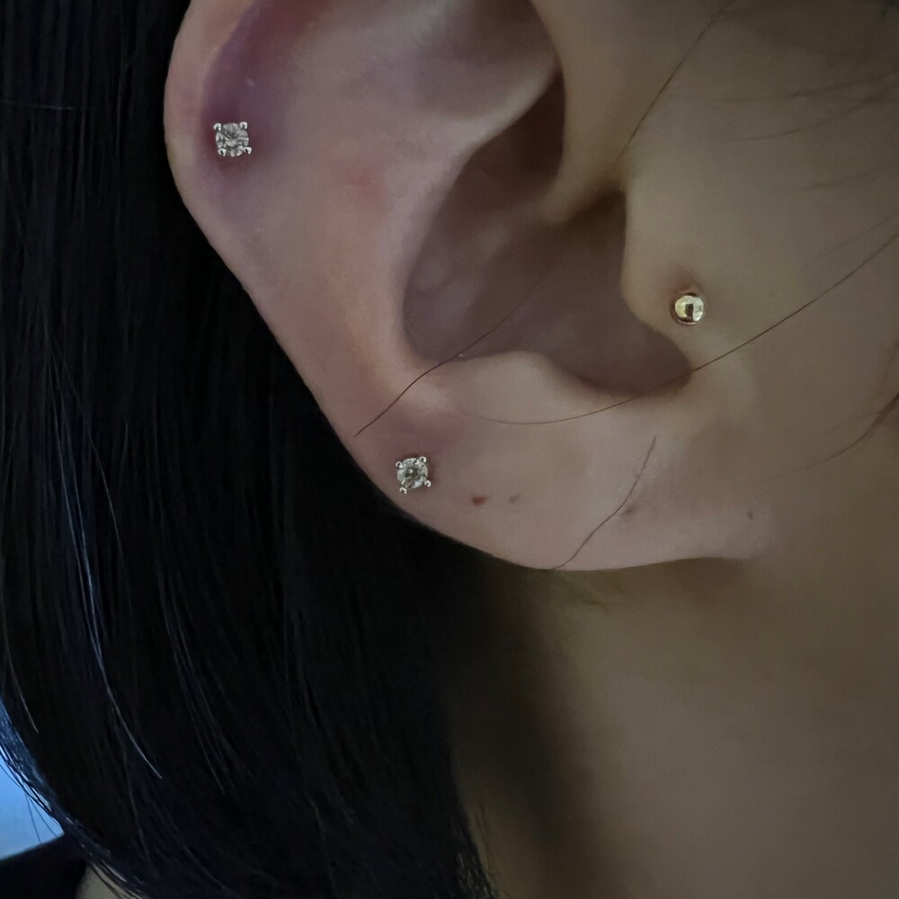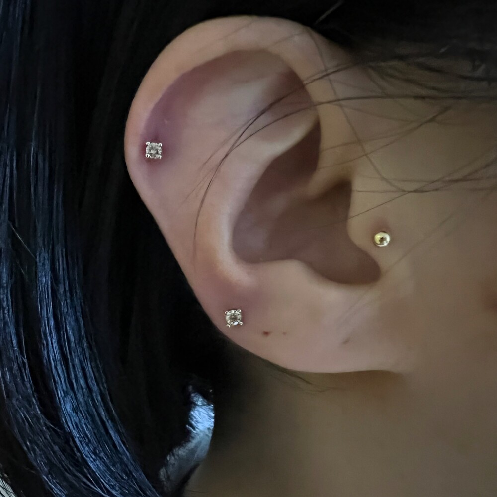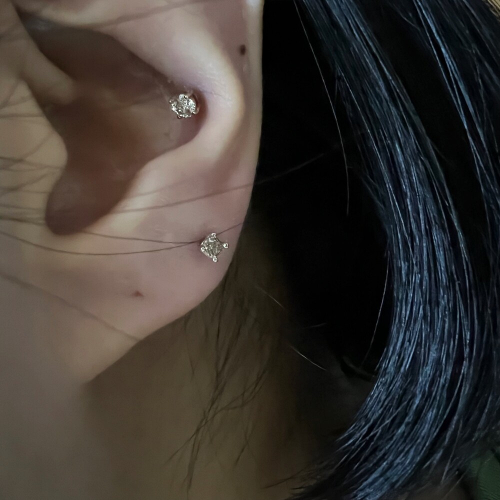 14K/18K 2.5mm 꼬냑 다이아 프리그 피어싱