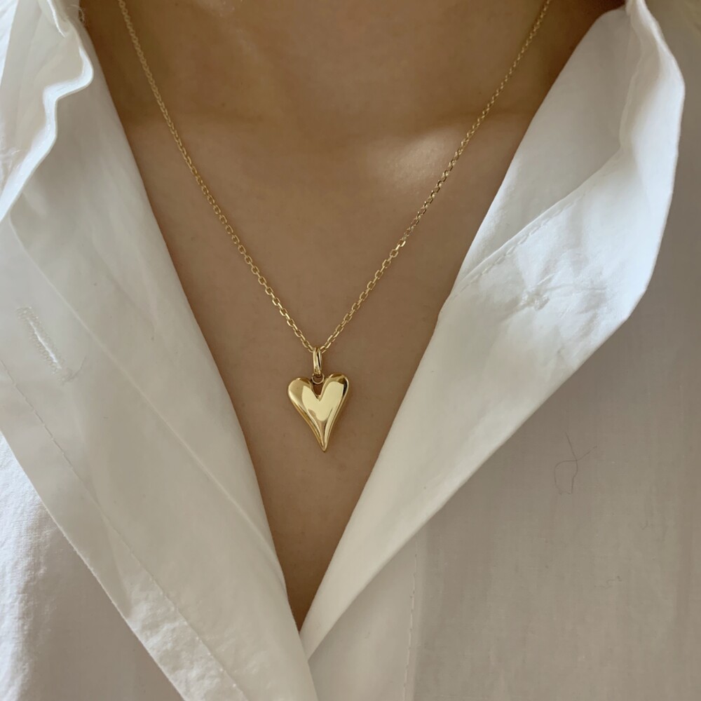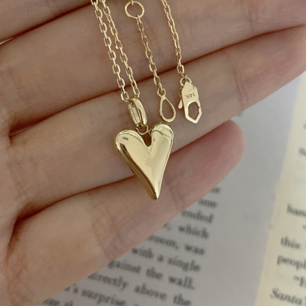 14K/18K 롱 쉐입 입체 하트 펜던트 목걸이