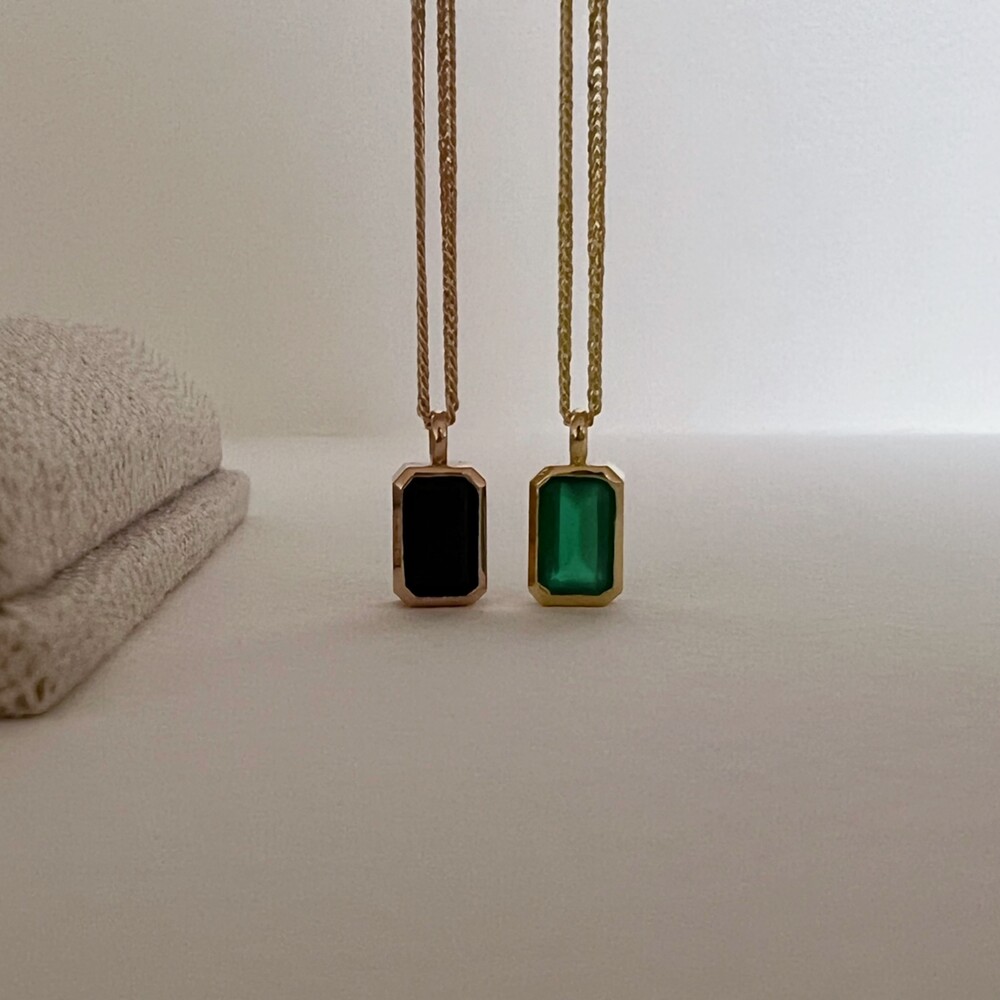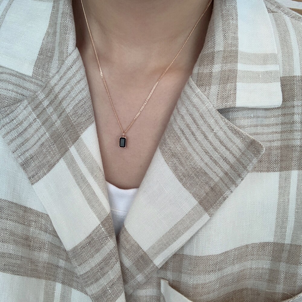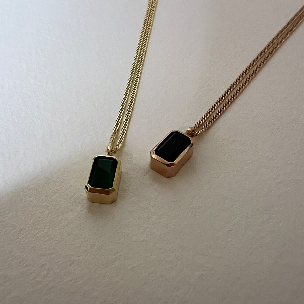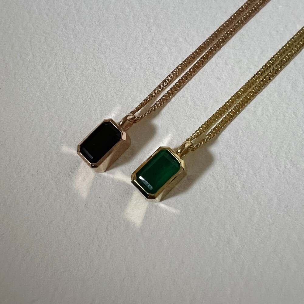 14K/18K 직사각 오닉스 롱 목걸이(블랙/그린)
