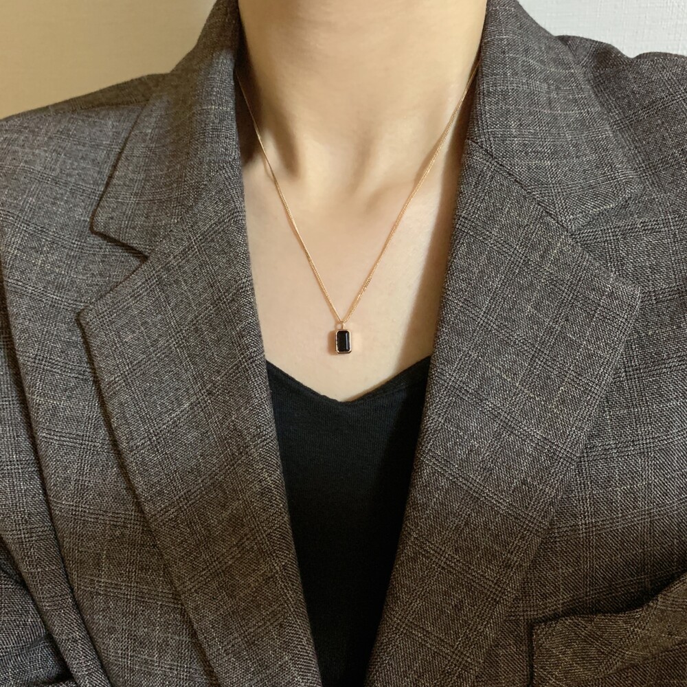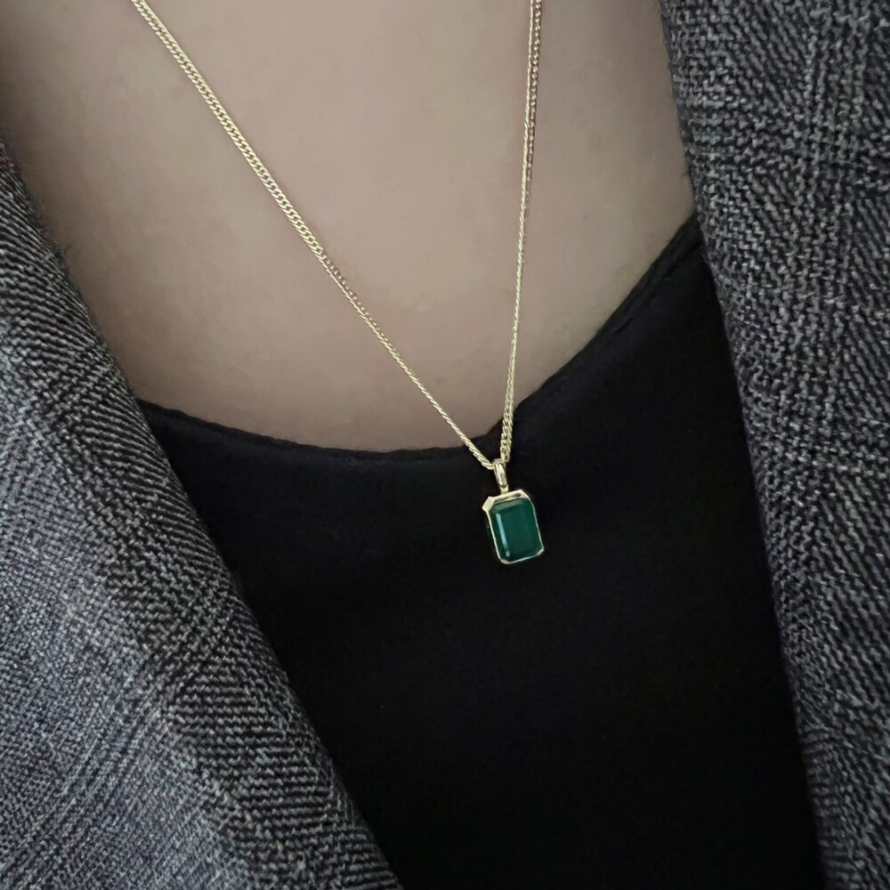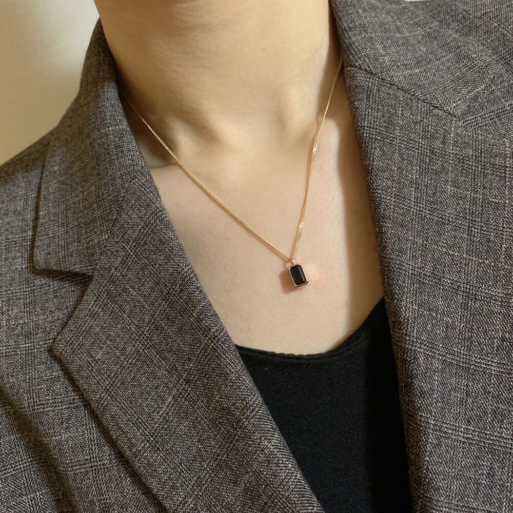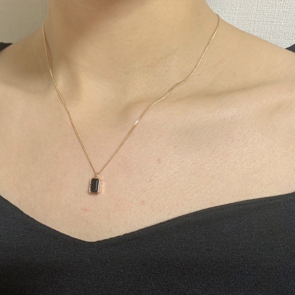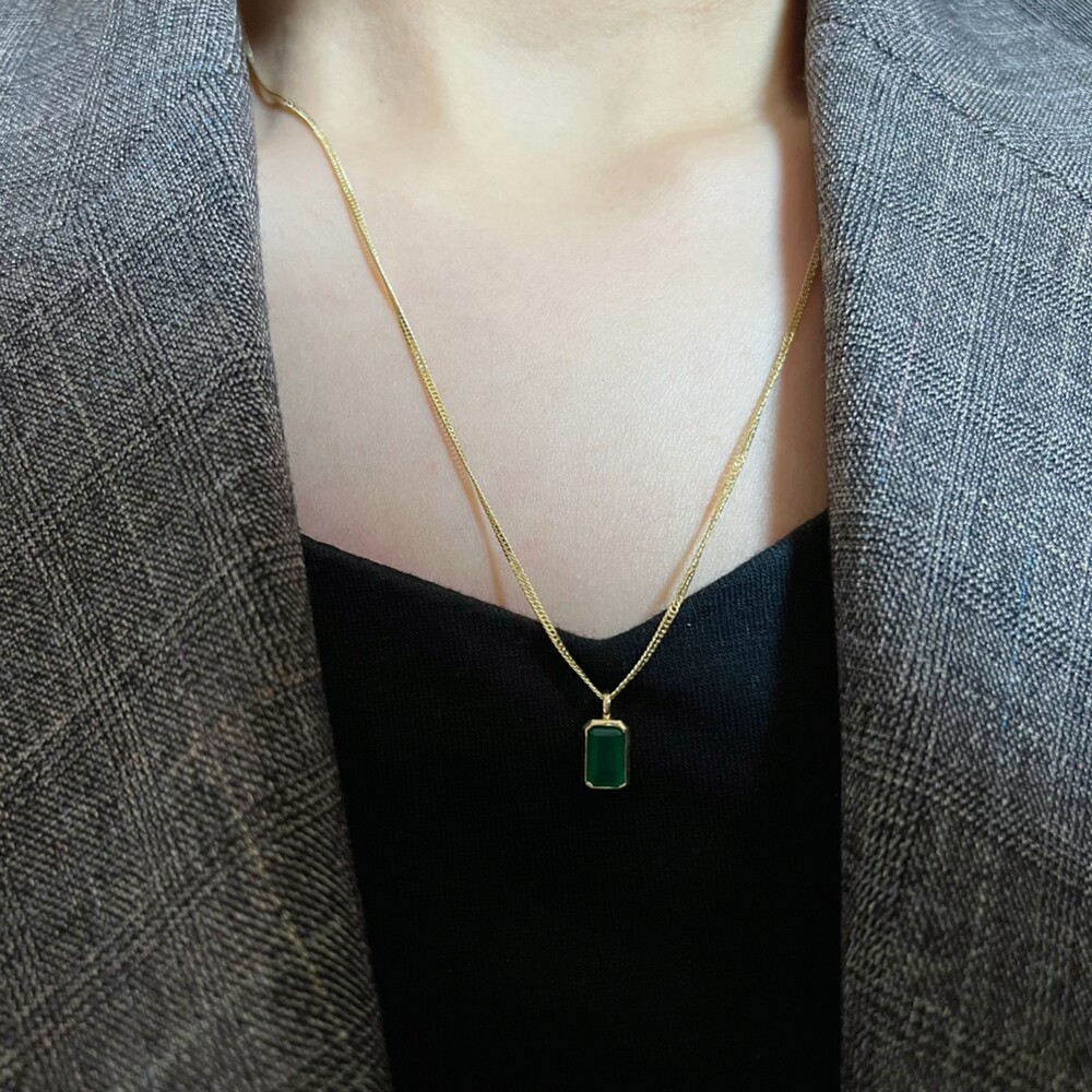 14K/18K 직사각 오닉스 롱 목걸이(블랙/그린)
