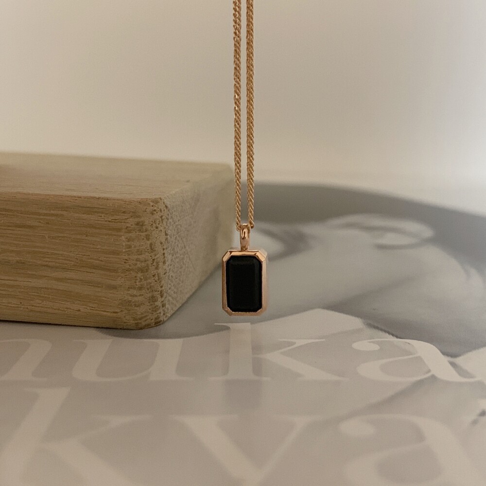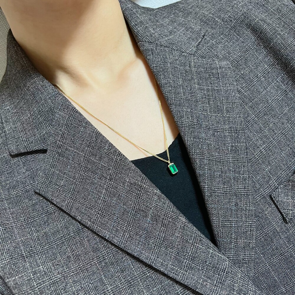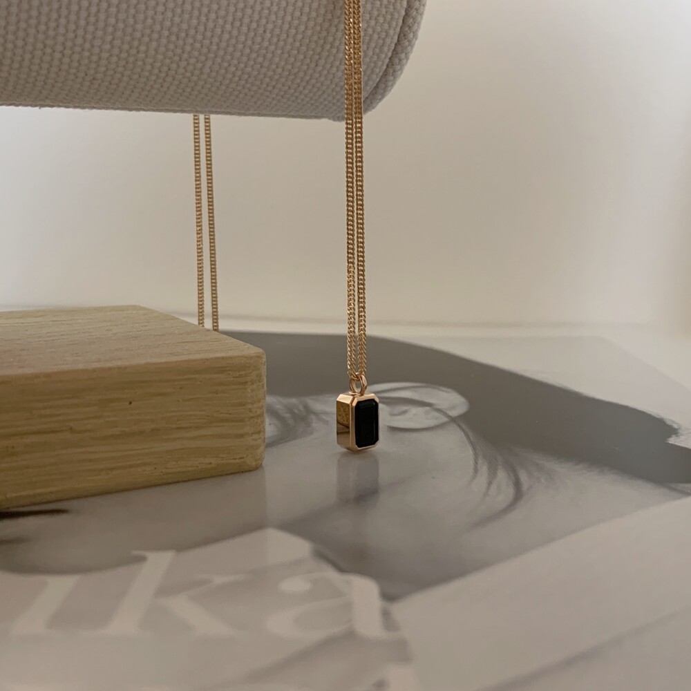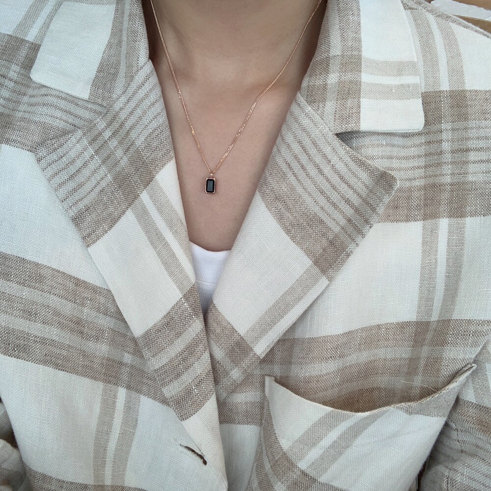14K/18K 직사각 오닉스 롱 목걸이(블랙/그린)