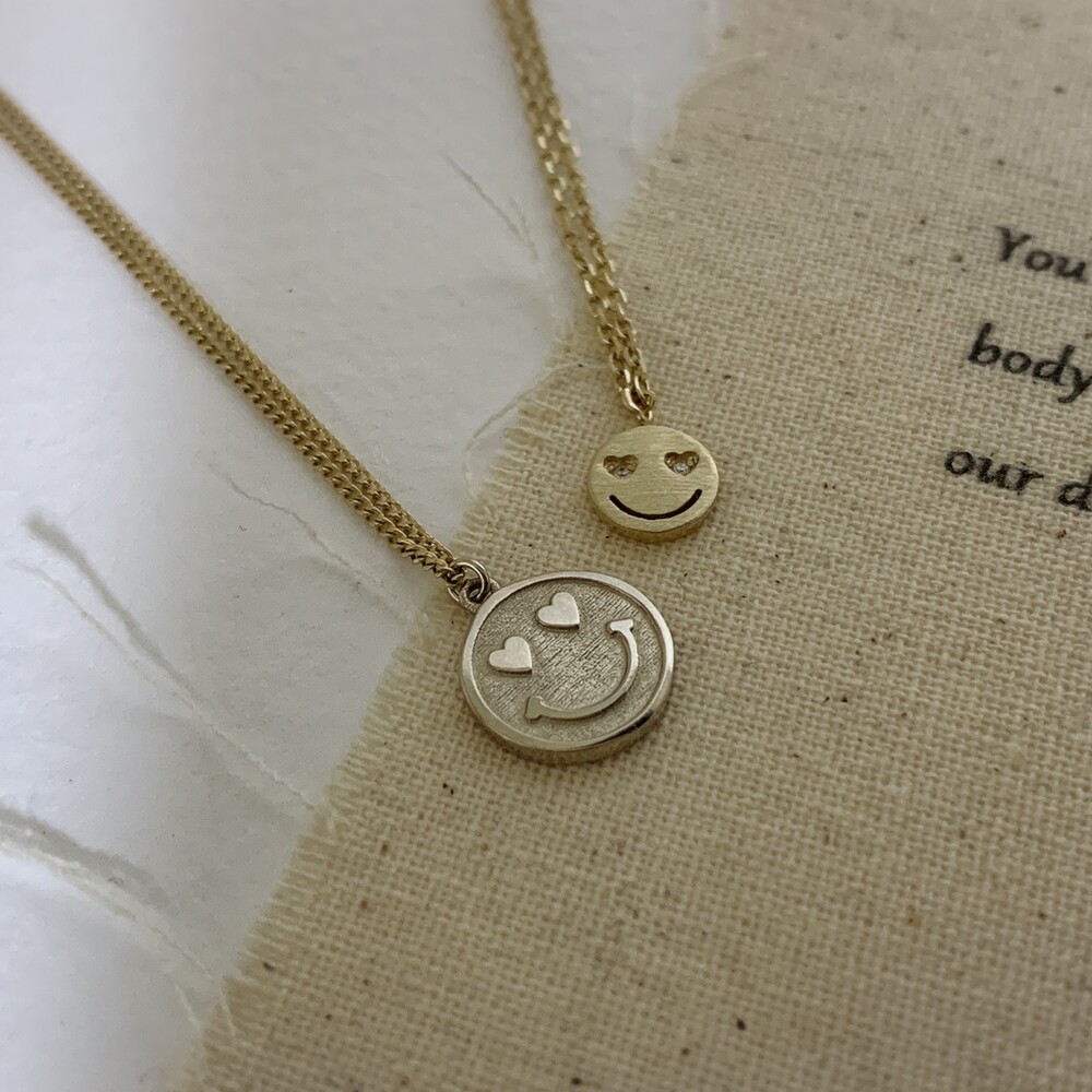 14K/18K 눈동글 눈하트 양면 스마일 목걸이