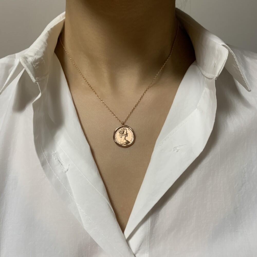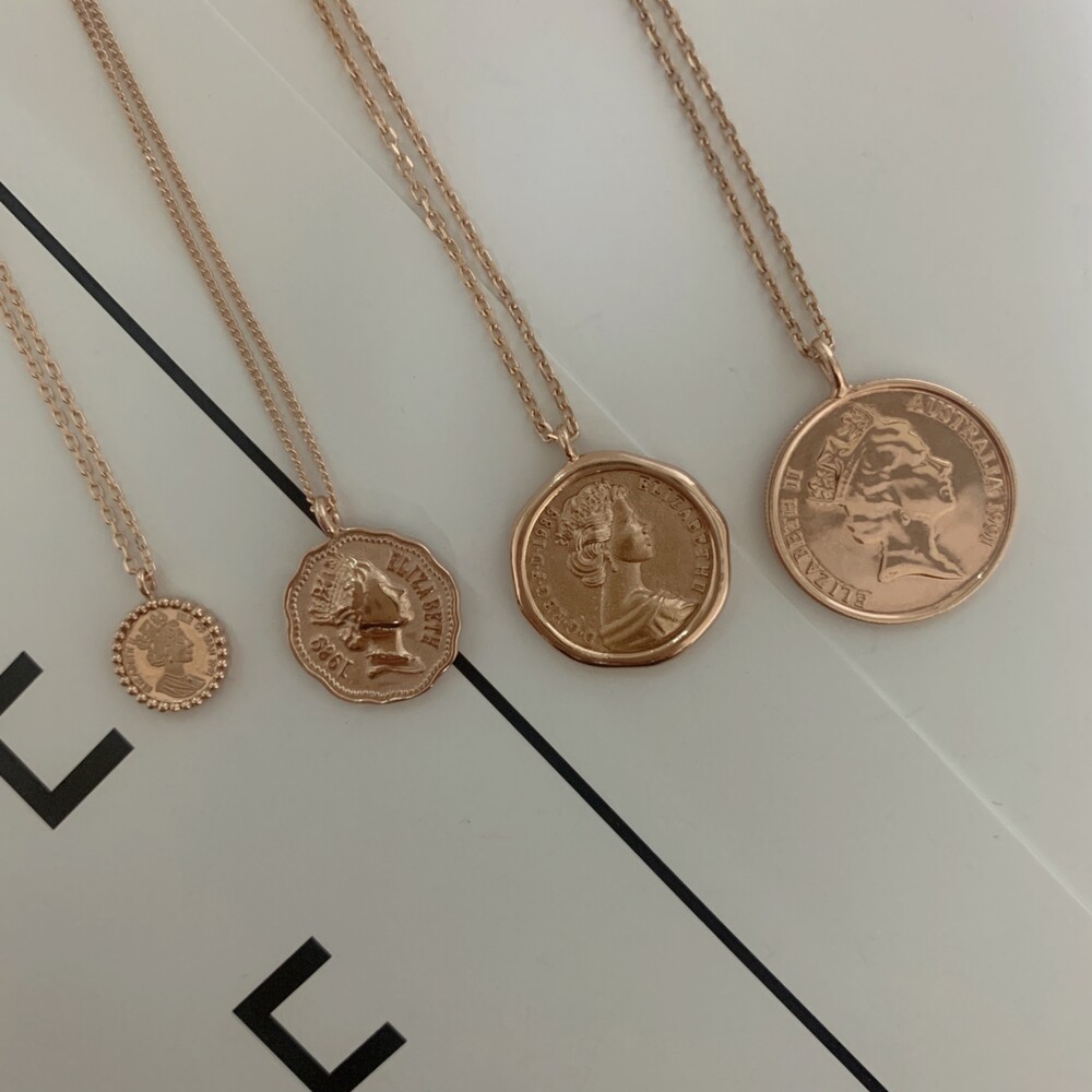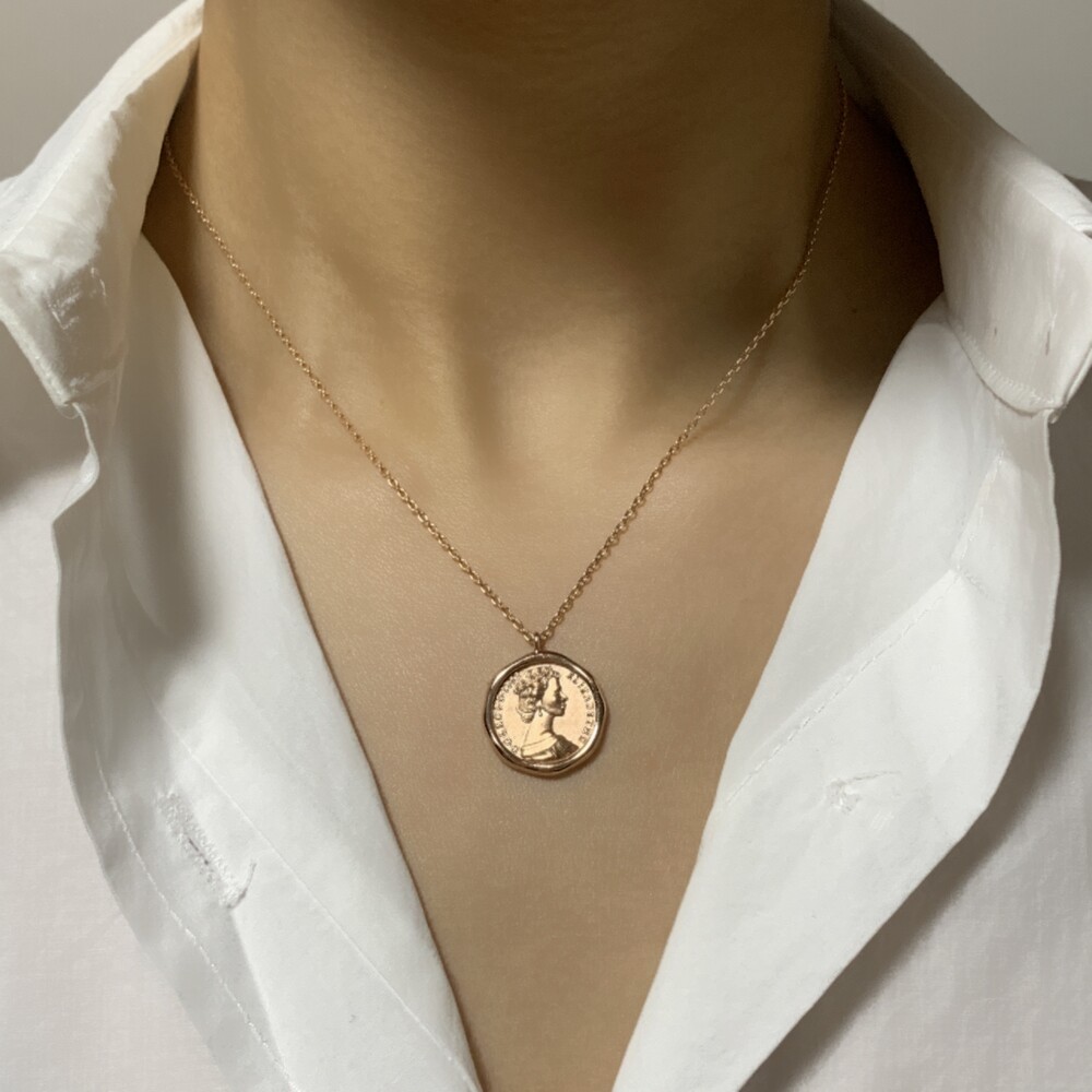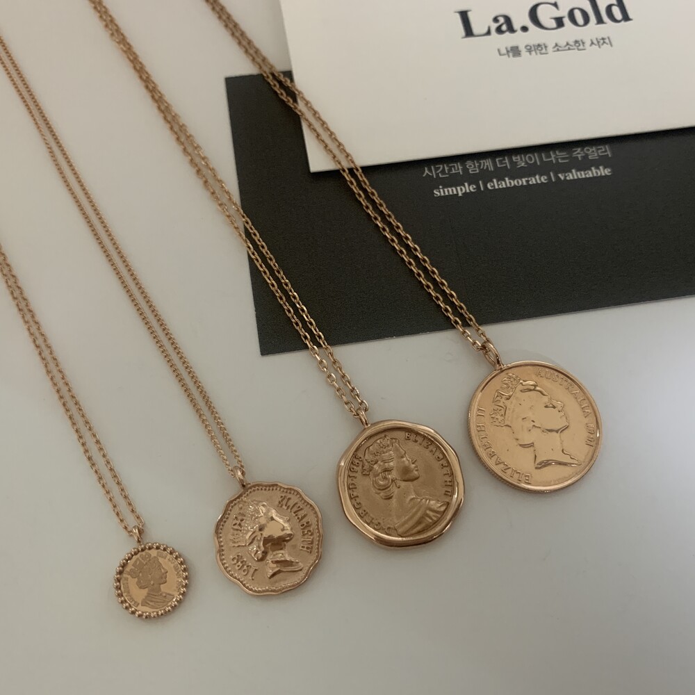 14K/18K 빈티지 무광 퀸 엘리자베스 코인 목걸이