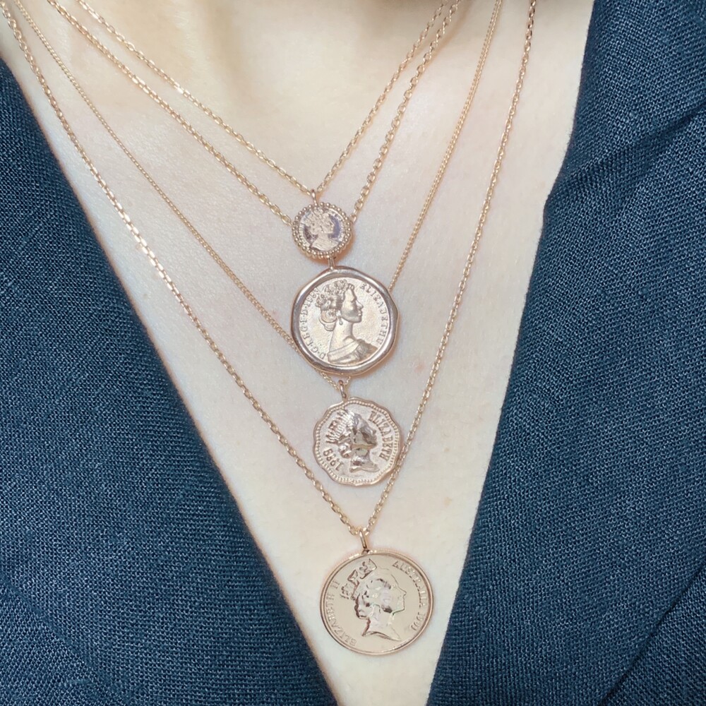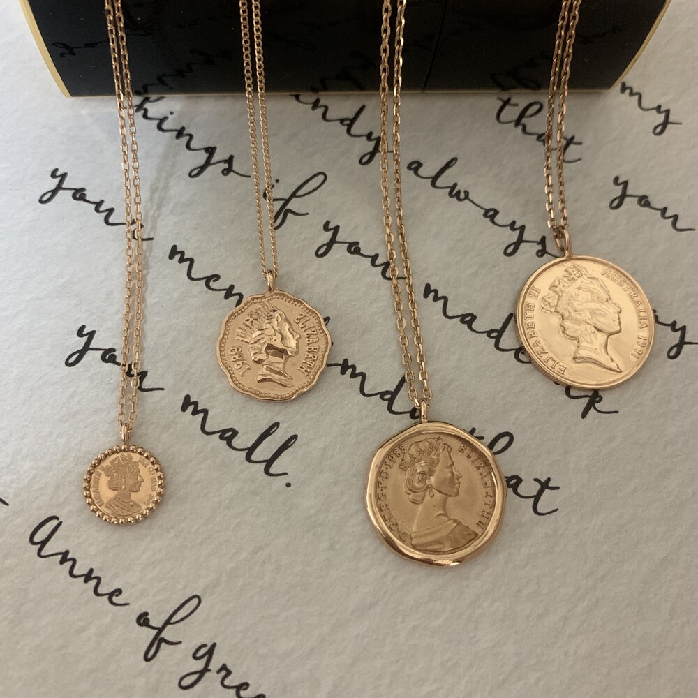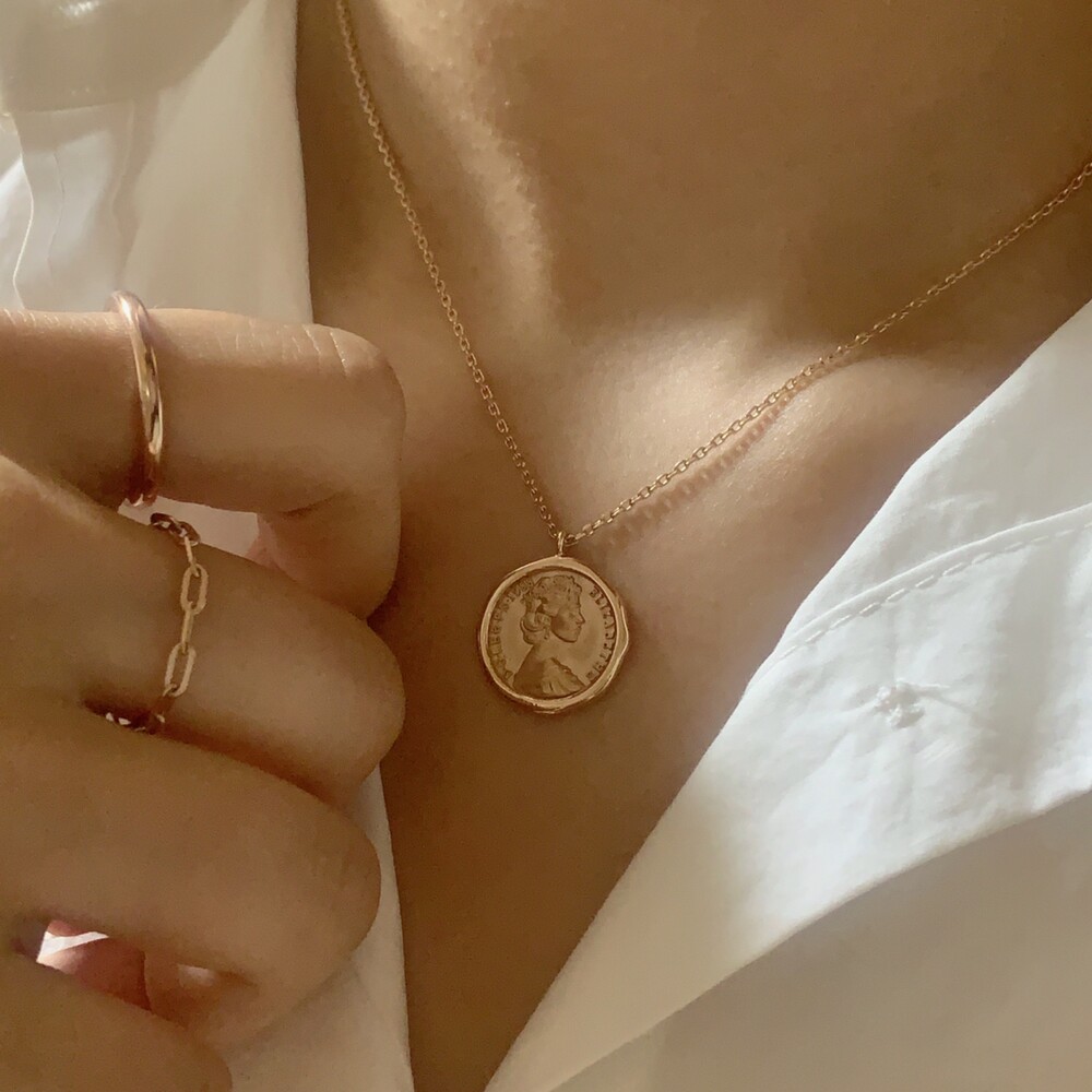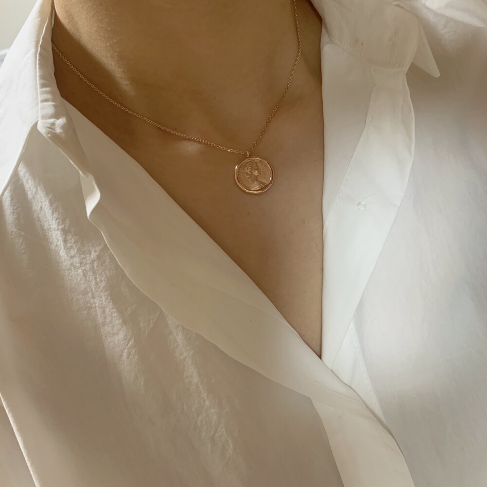 14K/18K 빈티지 무광 퀸 엘리자베스 코인 목걸이