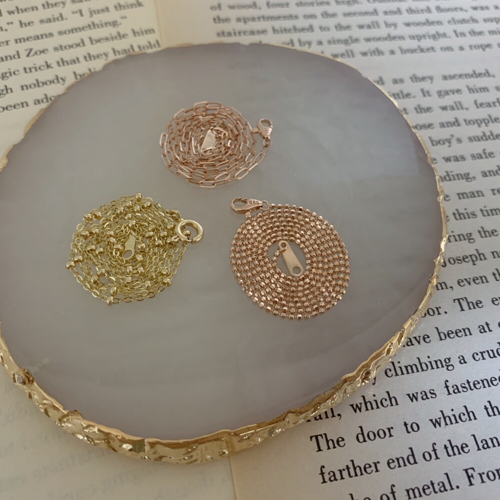 · 14K 18K 제품은 순금과 합금으로 구성되어 있기 때문에 온도, 습도, 염분, 화학 성분을 비롯해 착용 습관 내지 보관 방법 등 다양한 원인에 의해서 산화 또는 변색이 발생할 수 있습니다.
