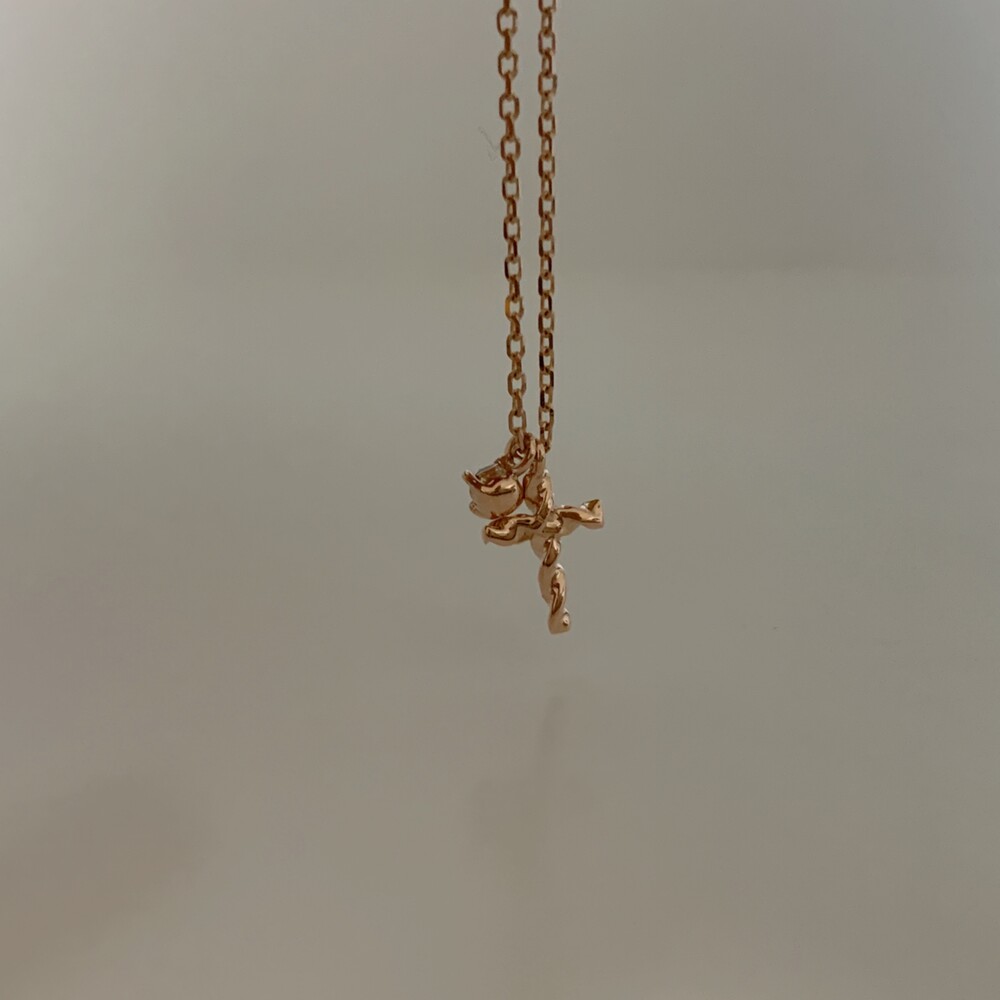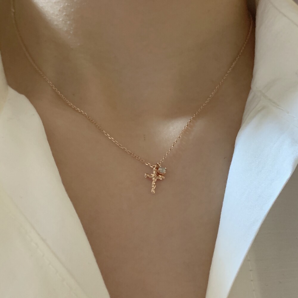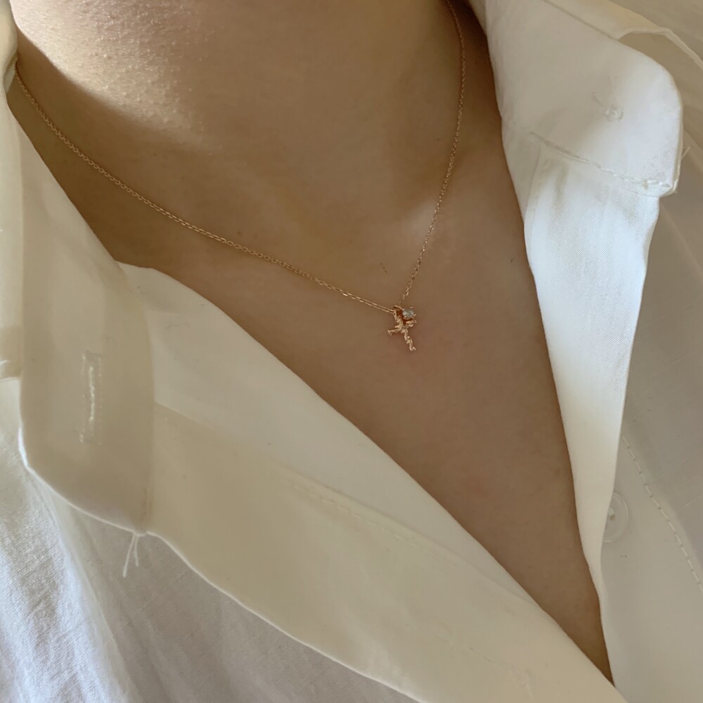 14K/18K 러프 다이아 참 포인트 트위스트 십자가 목걸이