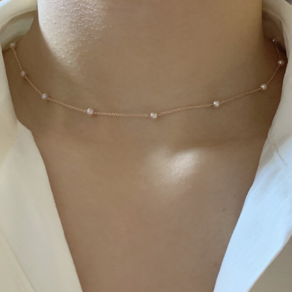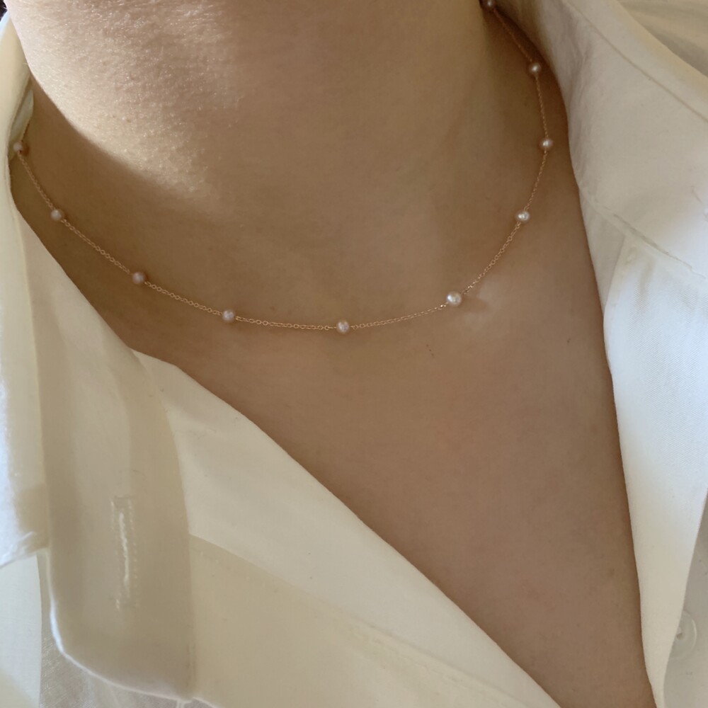 14K/18K 라벤더 담수 진주 3mm 목걸이