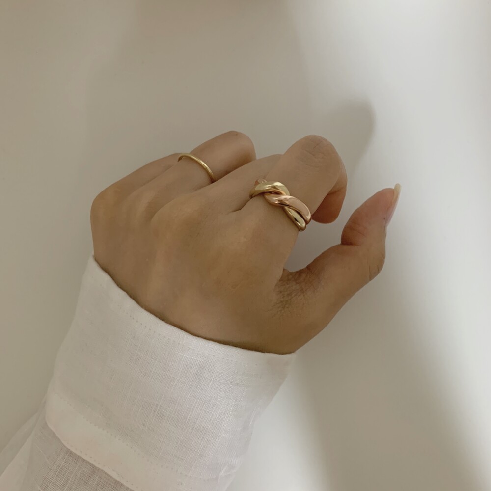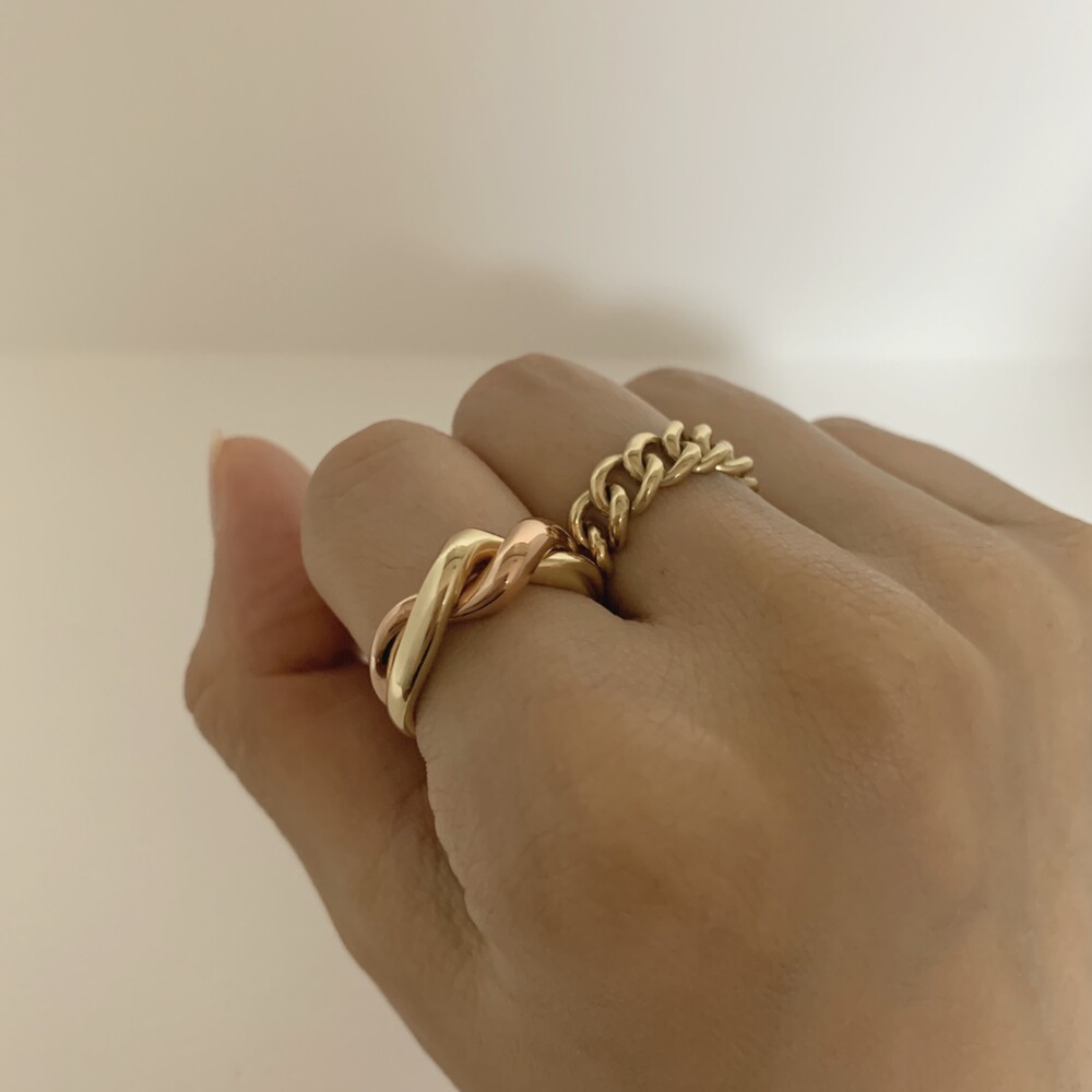 14K/18K 볼드 믹스 꼬임링 반지