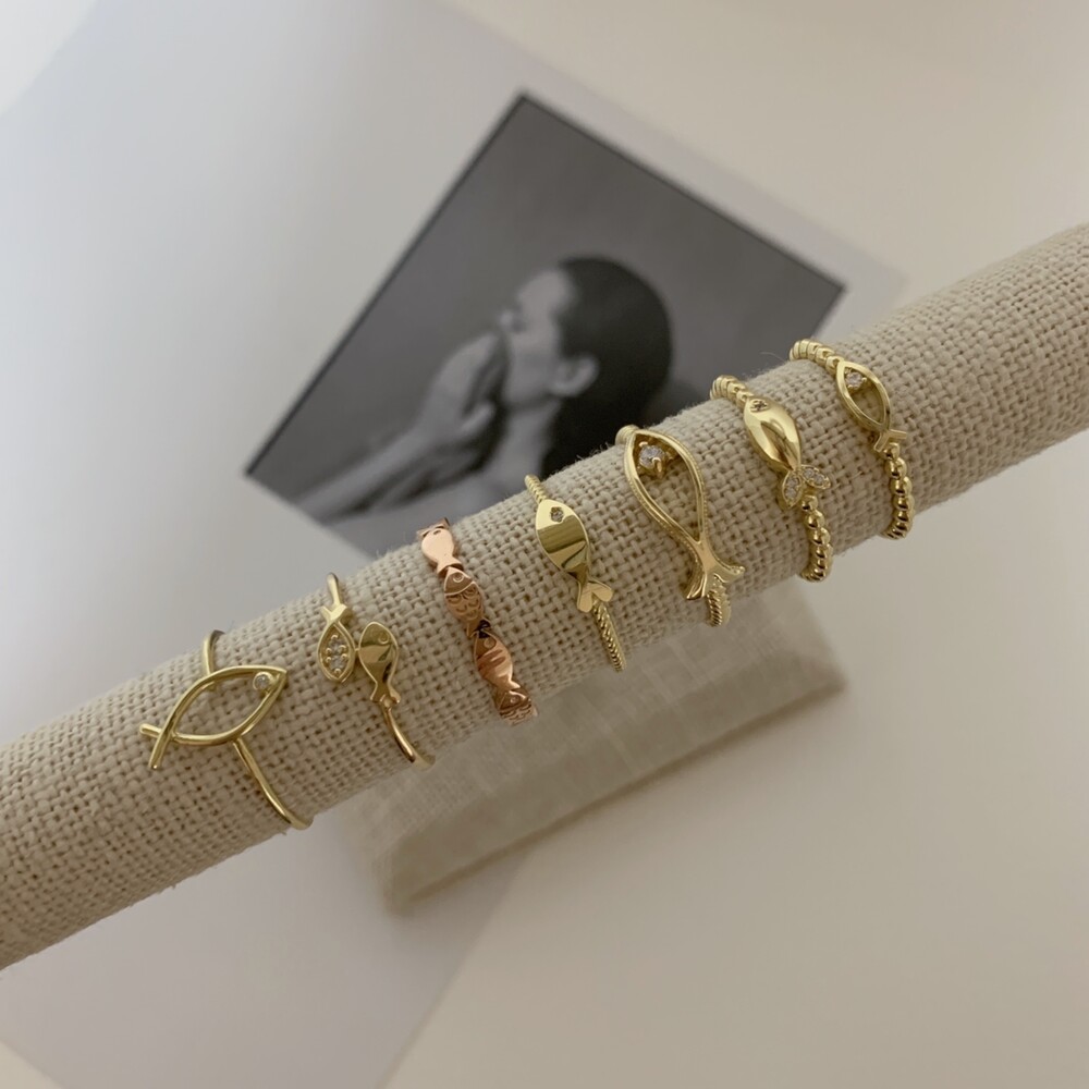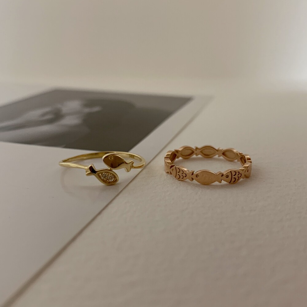 14K/18K 굿 럭 물고기 뺑돌이 반지