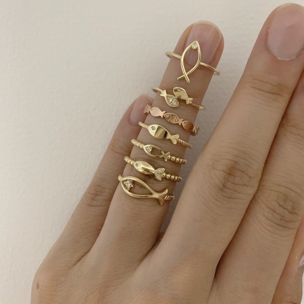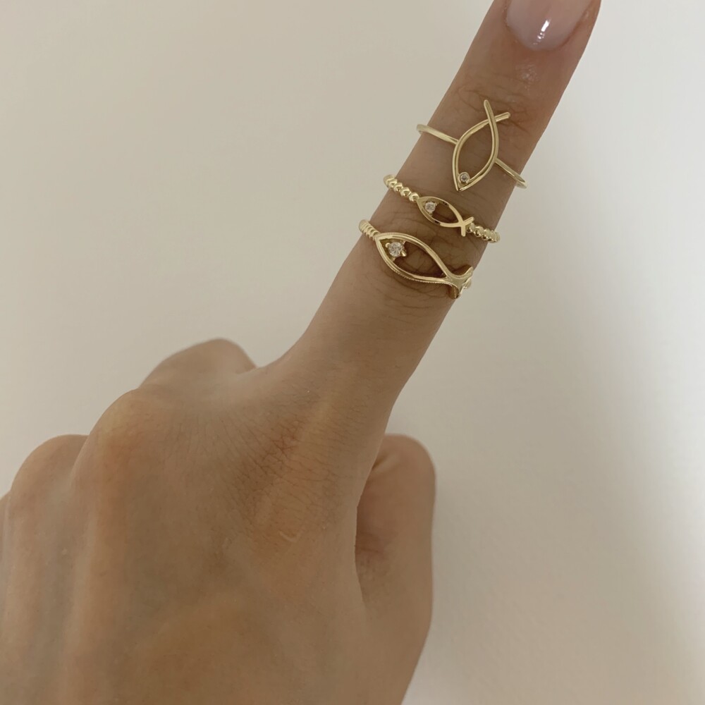 14K/18K 익투스 물고기 레이어드 링