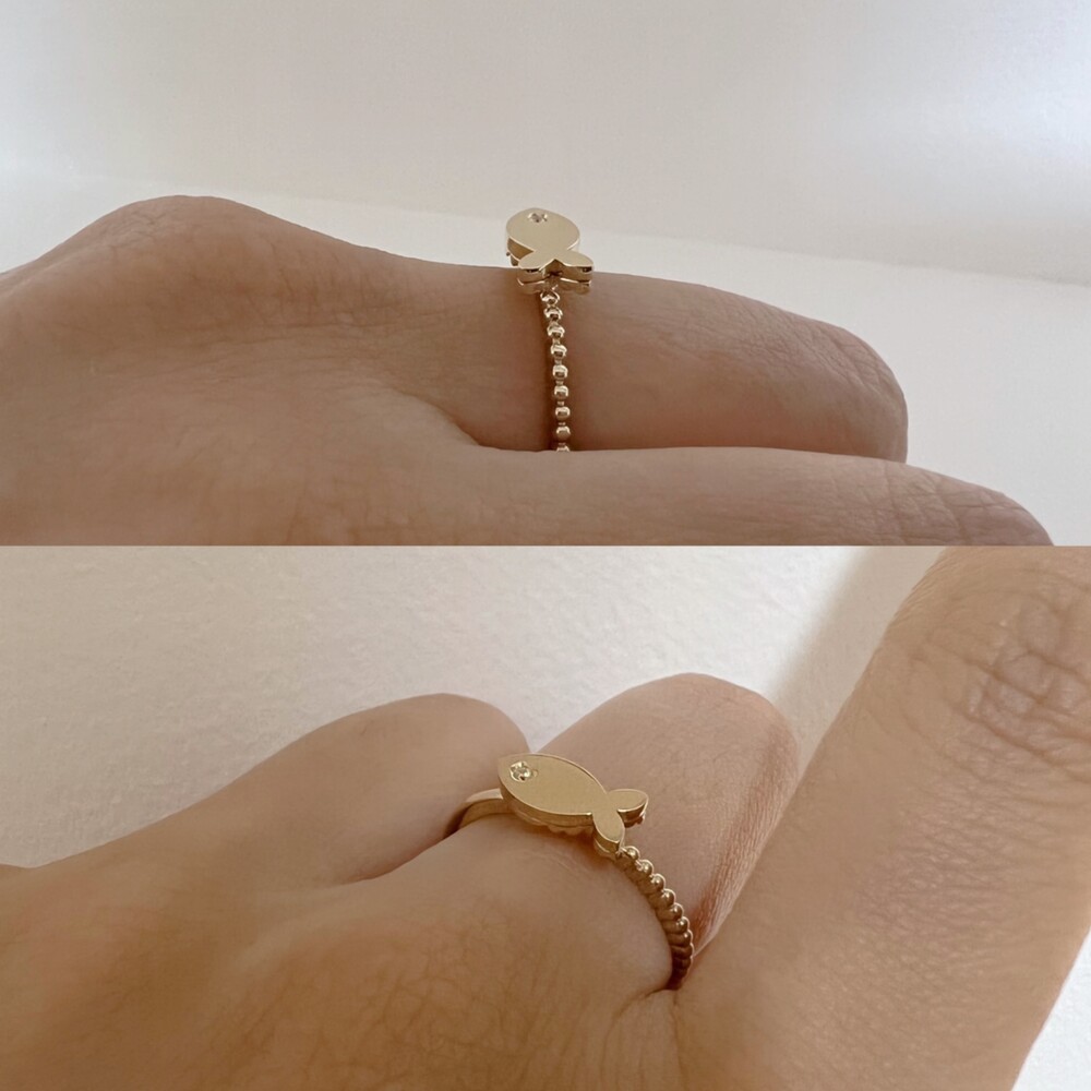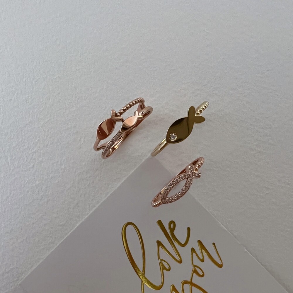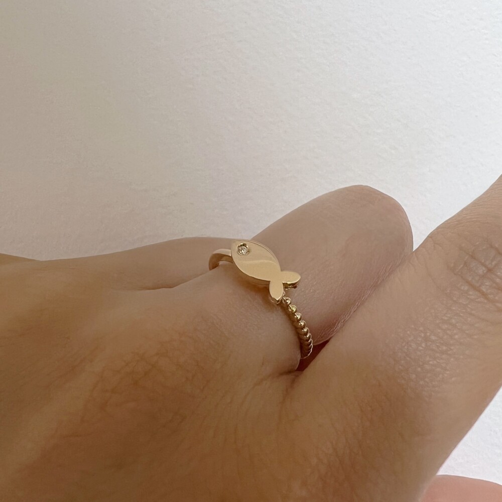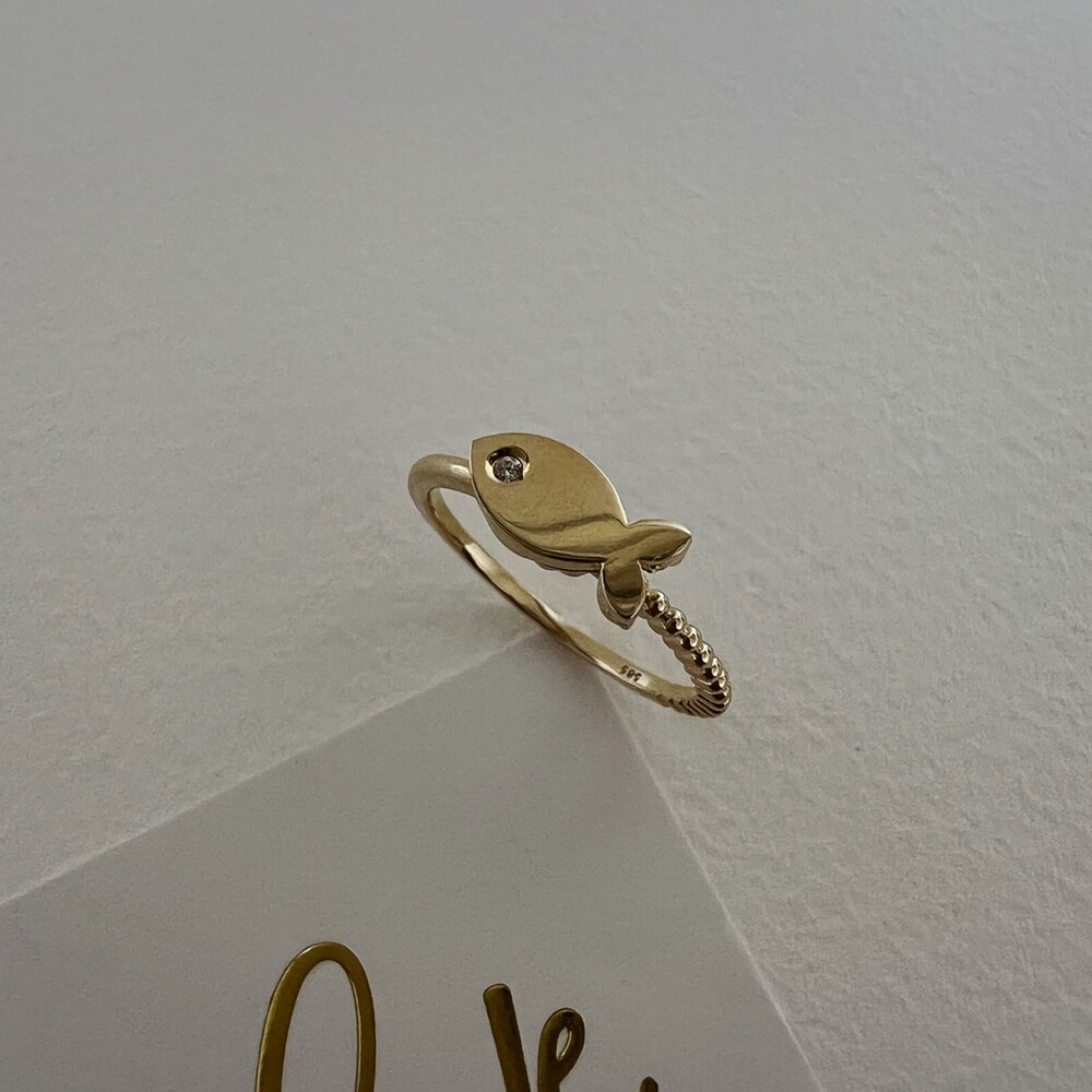 14K/18K 빗살 무늬 포인트 물고기 반지