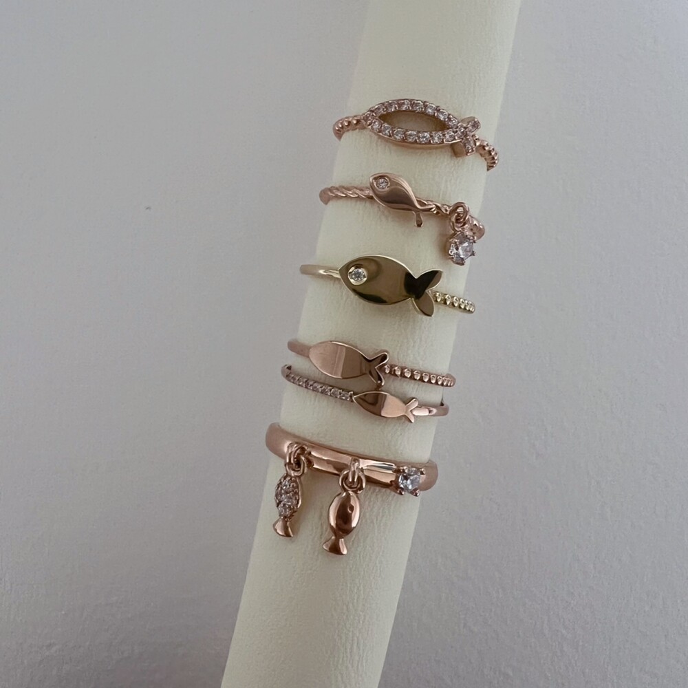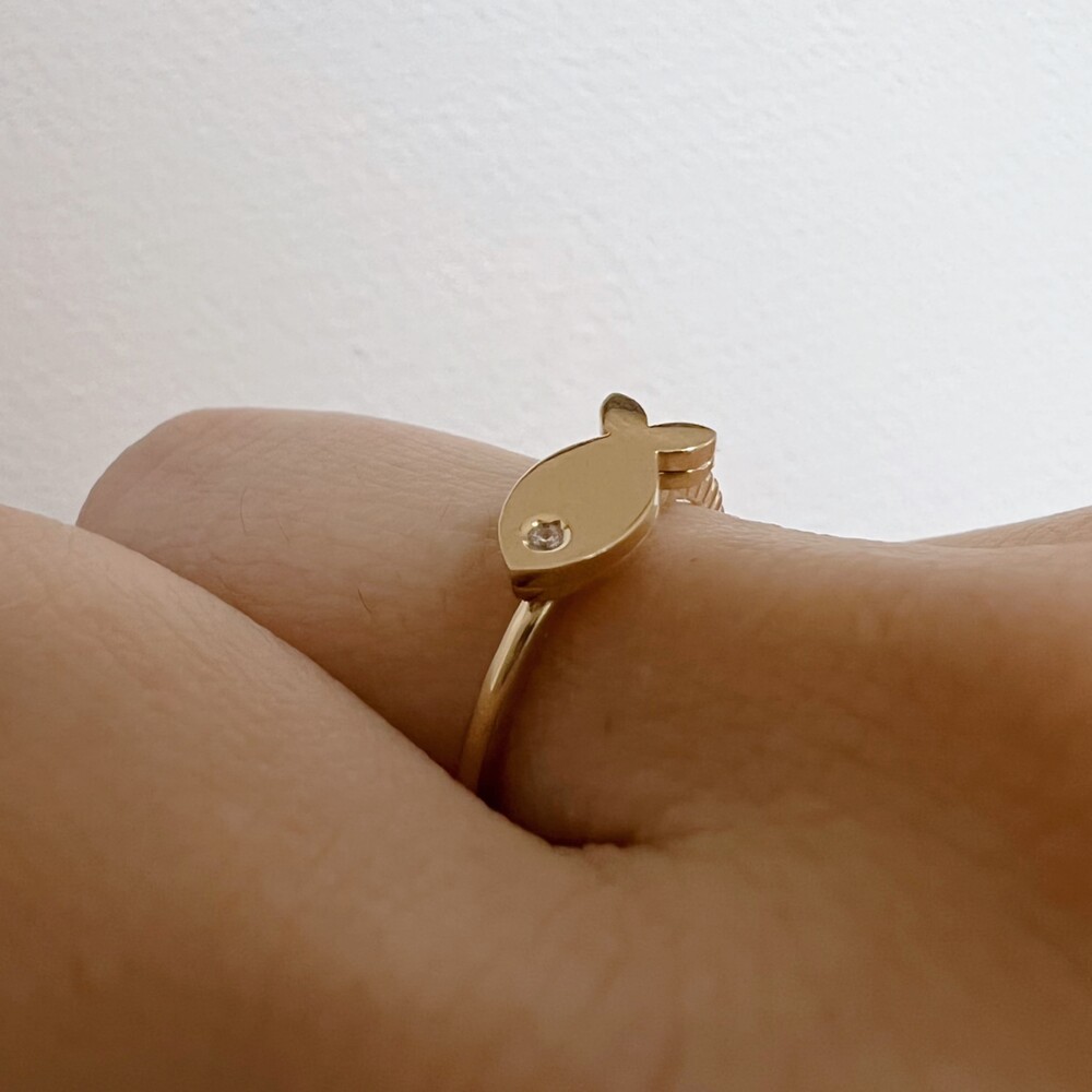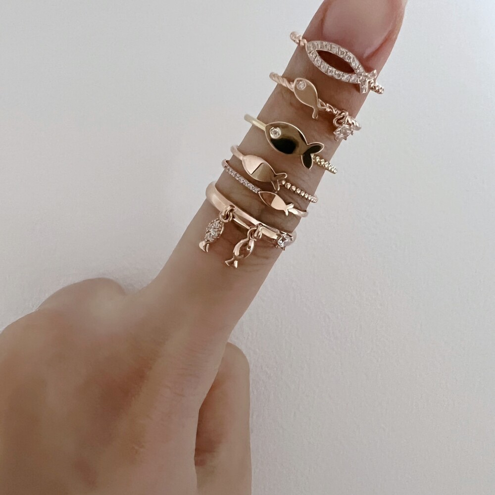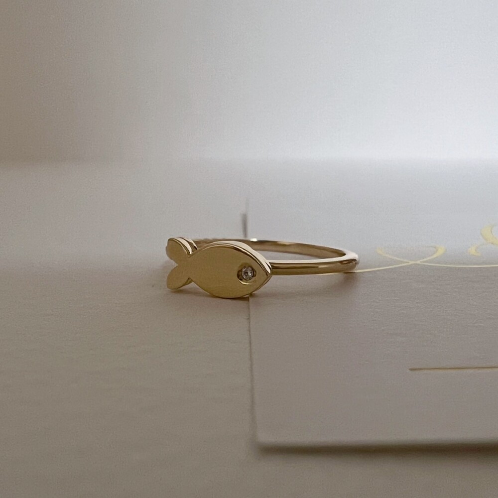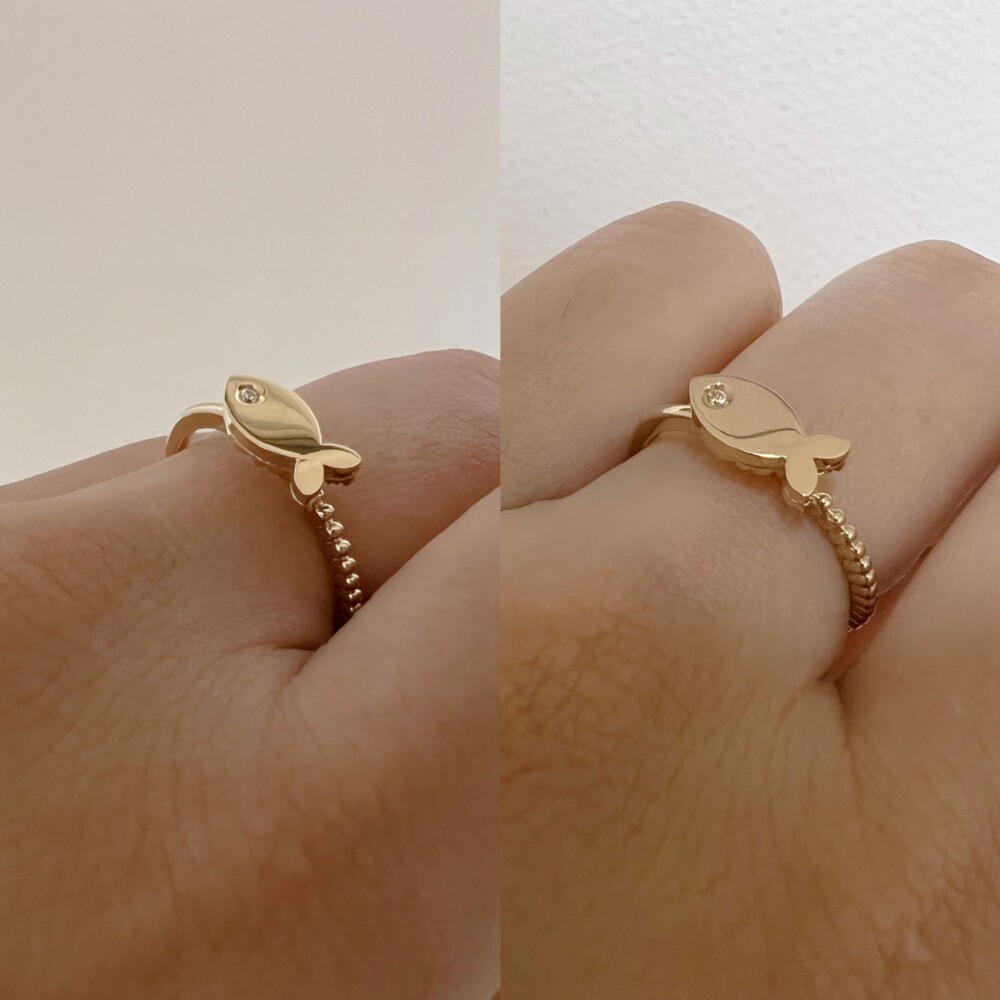 14K/18K 빗살 무늬 포인트 물고기 반지