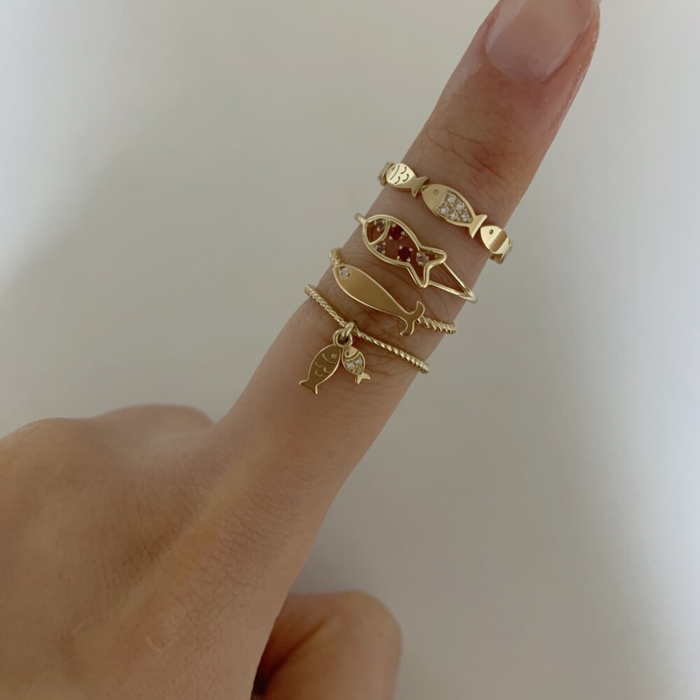연쇄적으로 이어지는 럭키 물고기 반지