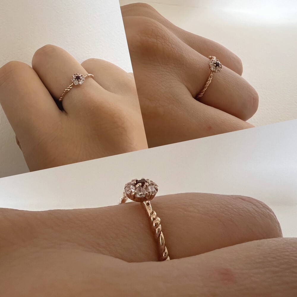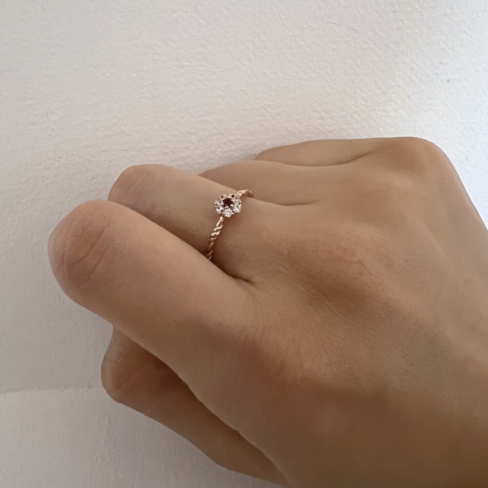14K/18K 루비 큐빅 플라워 꽃 반지