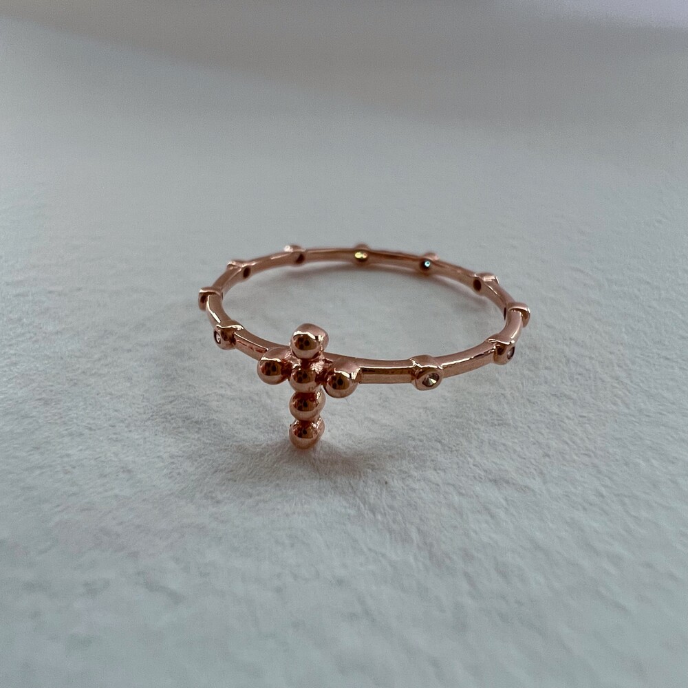 14K/18K 볼 십자가 큐빅 묵주 반지