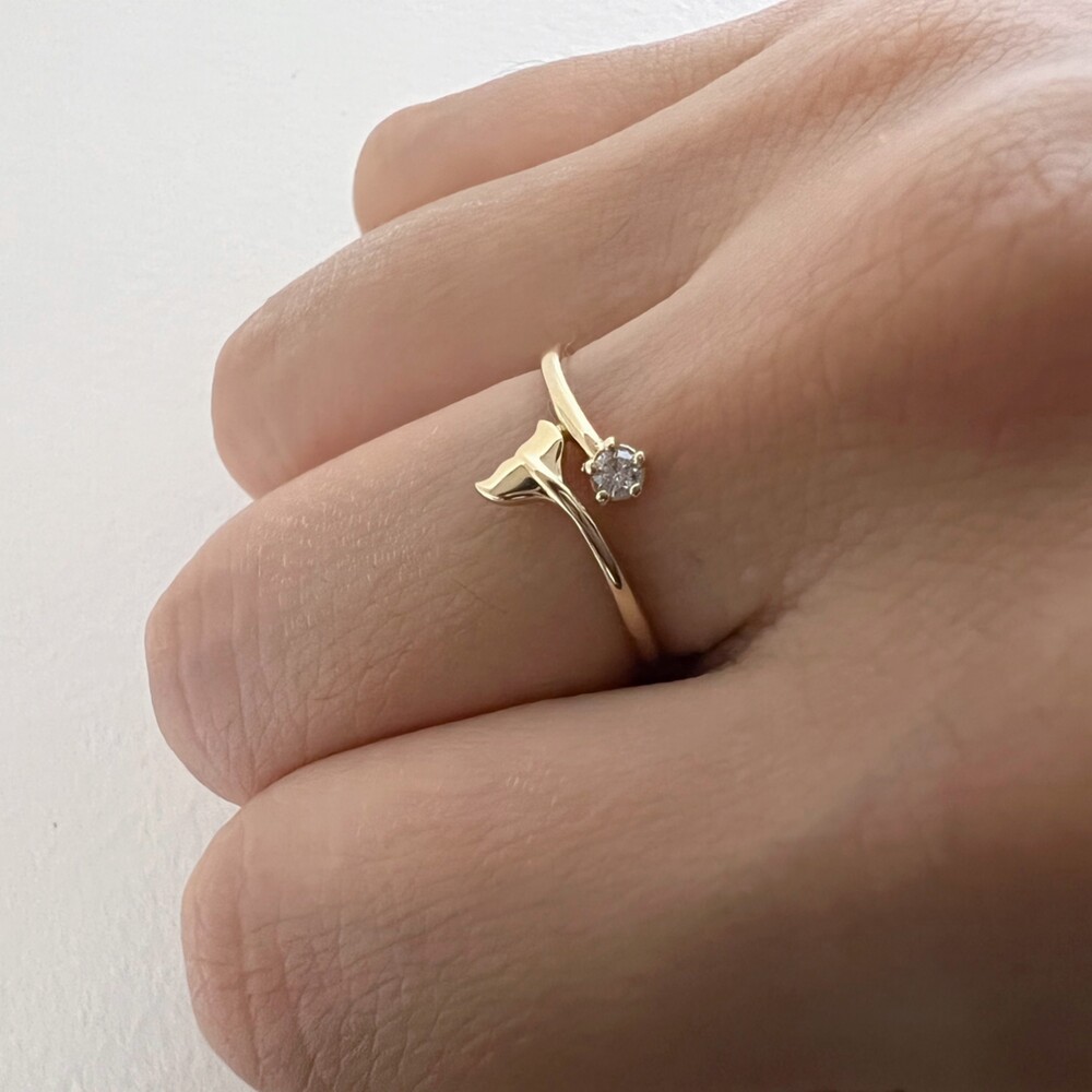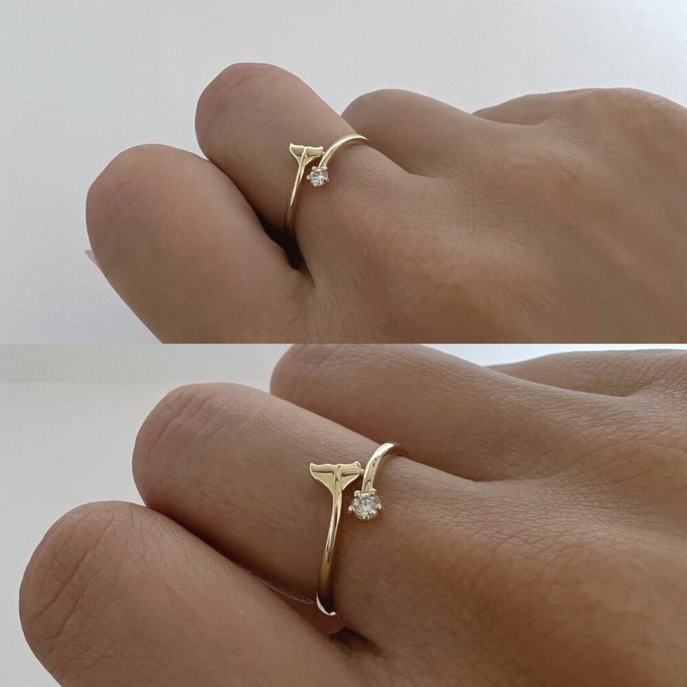 14K/18K 큐빅 포인트 고래 꼬리 반지