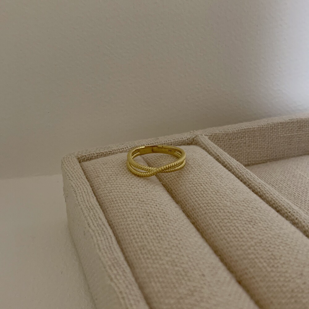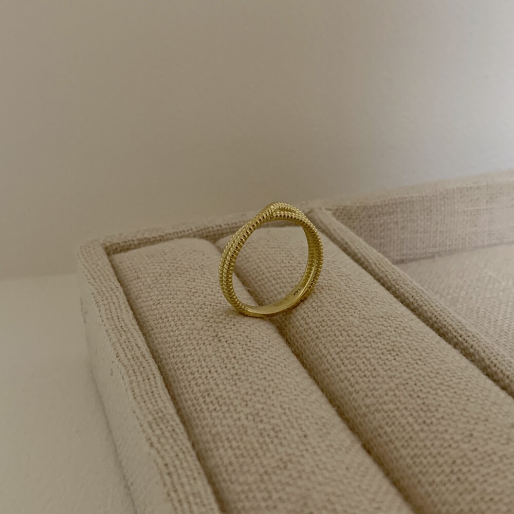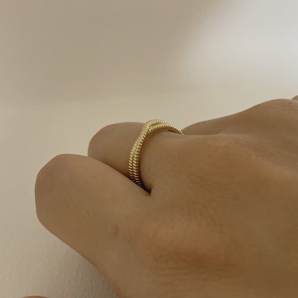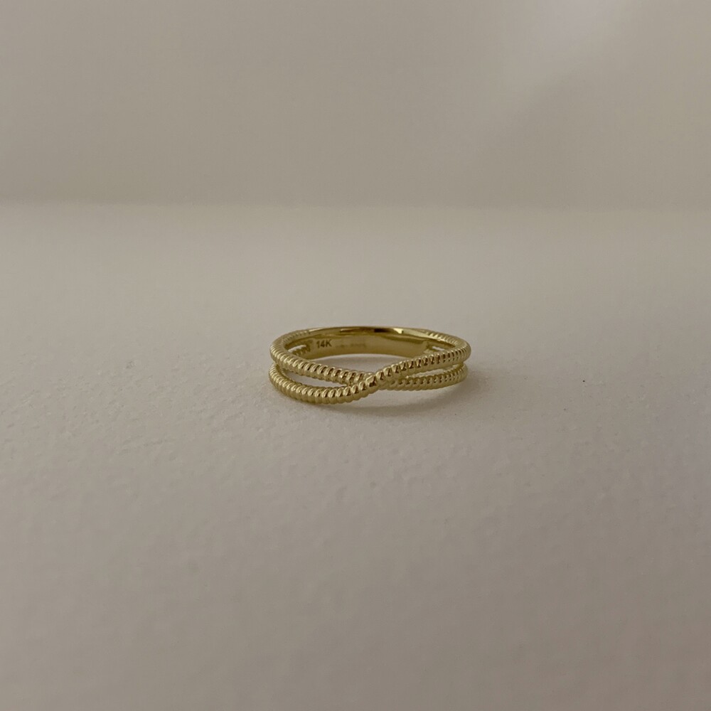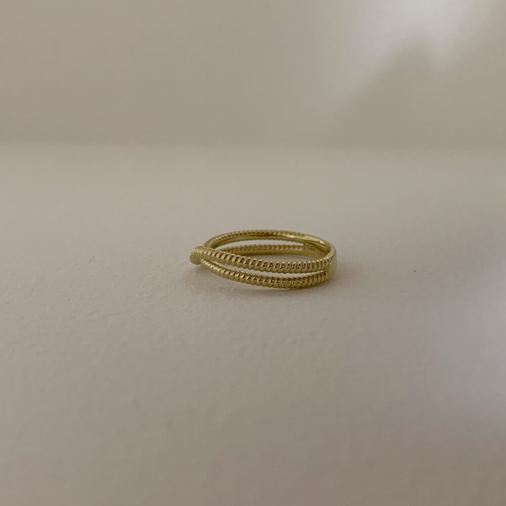 두 줄이 입체적으로 크로스되는 데일리 반지