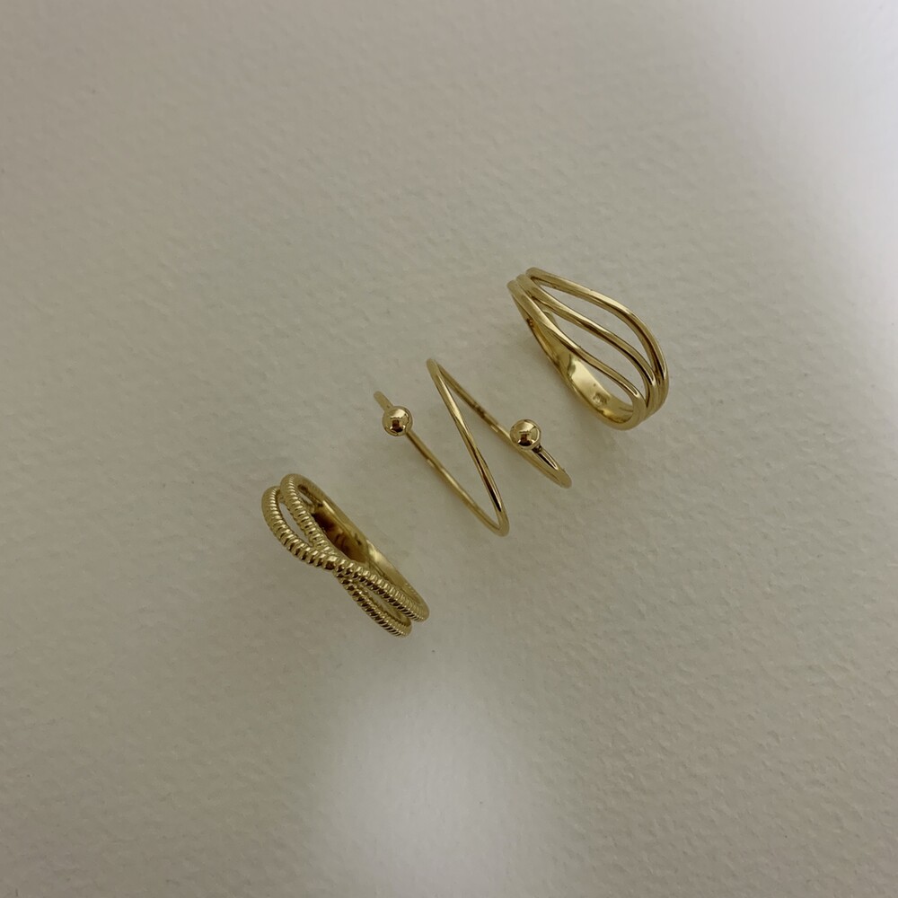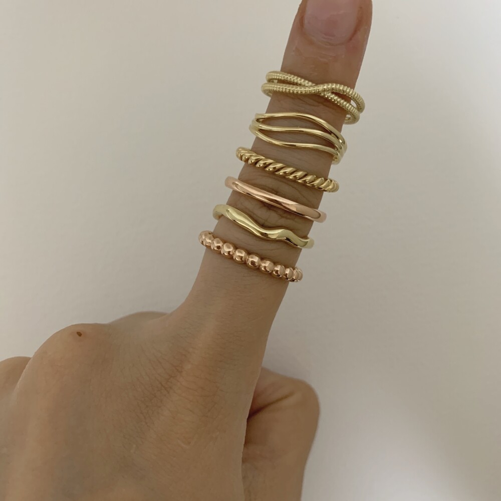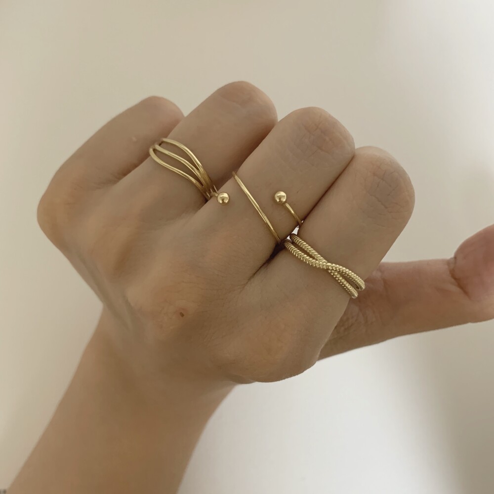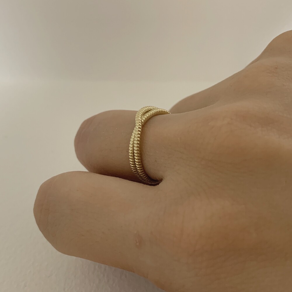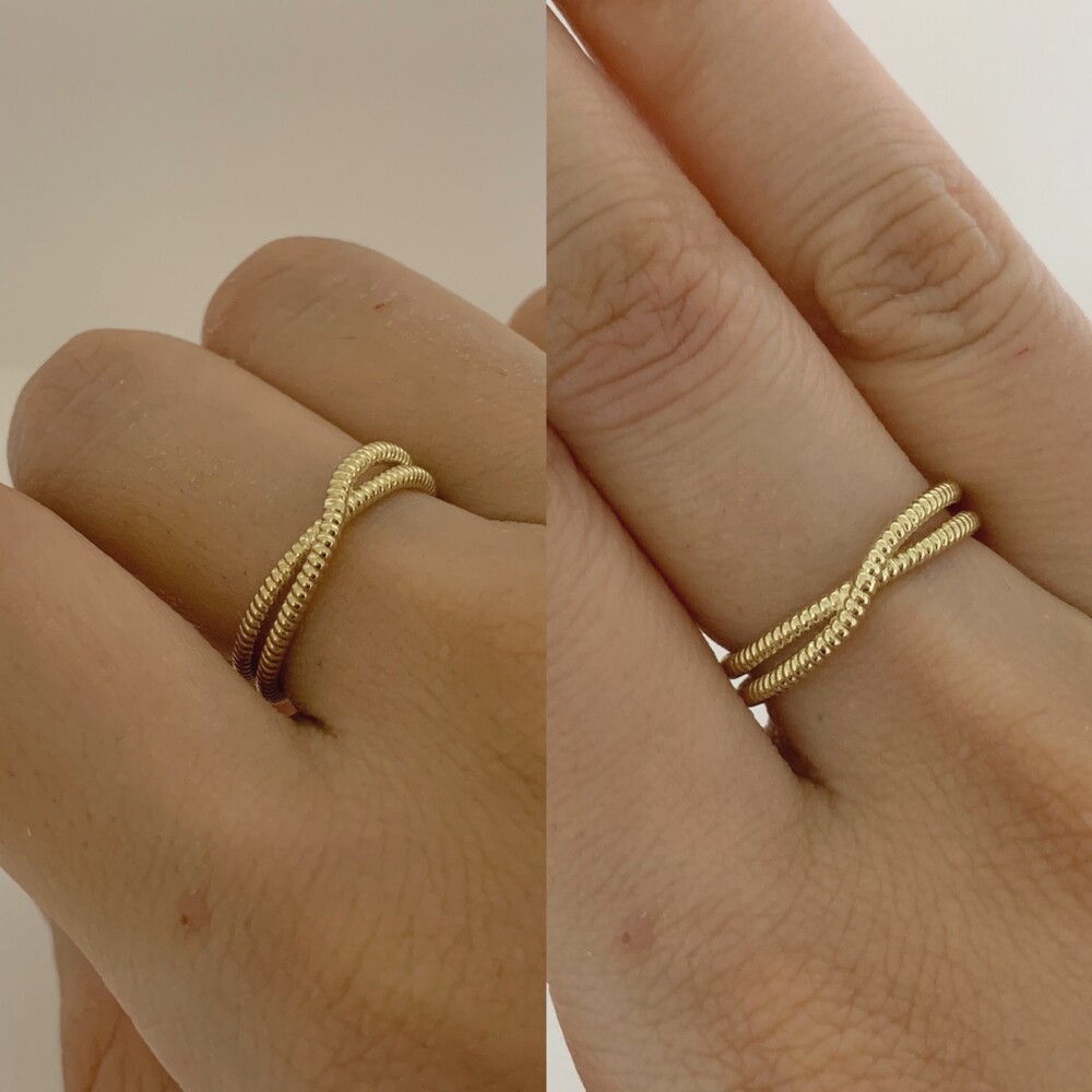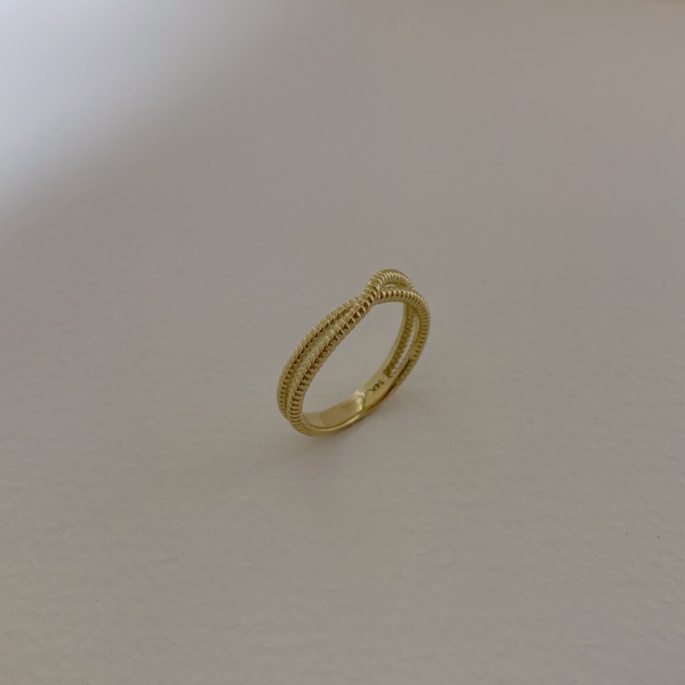 두 줄이 입체적으로 크로스되는 데일리 반지