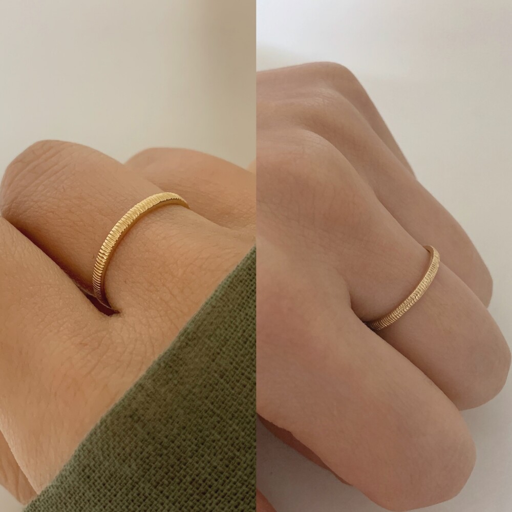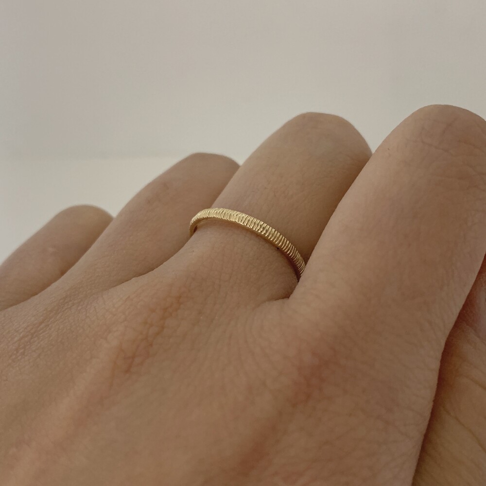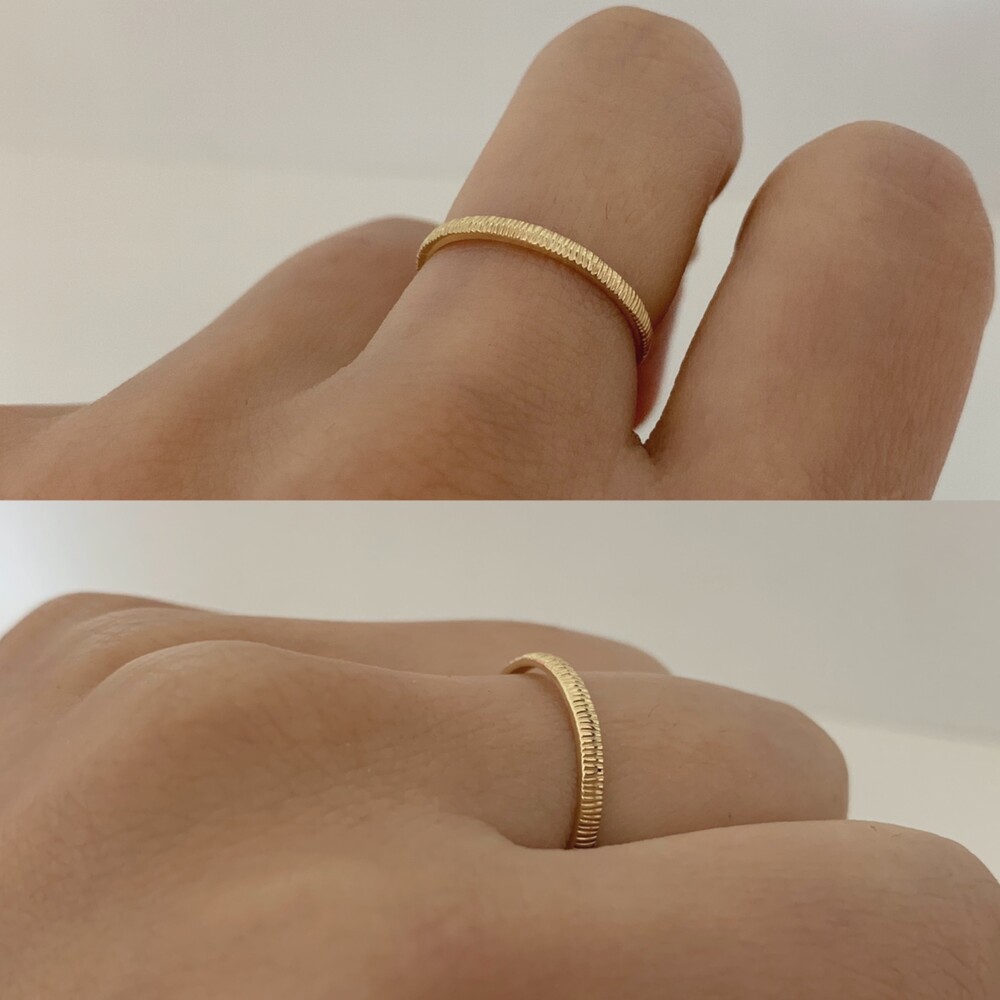 촘촘한 간격으로 세로 무늬가 이어지는 밴드 링