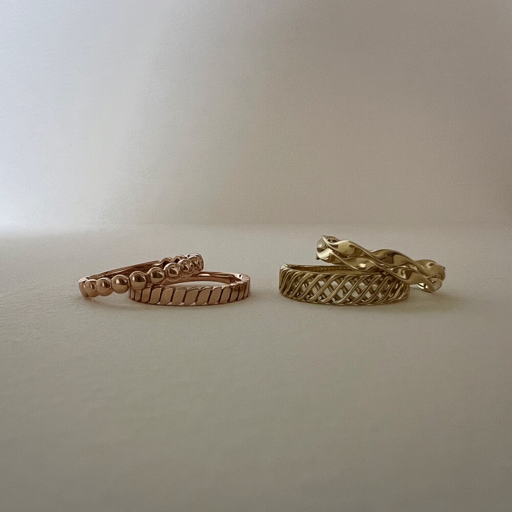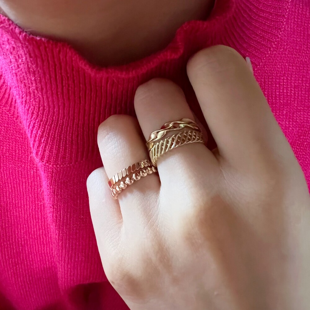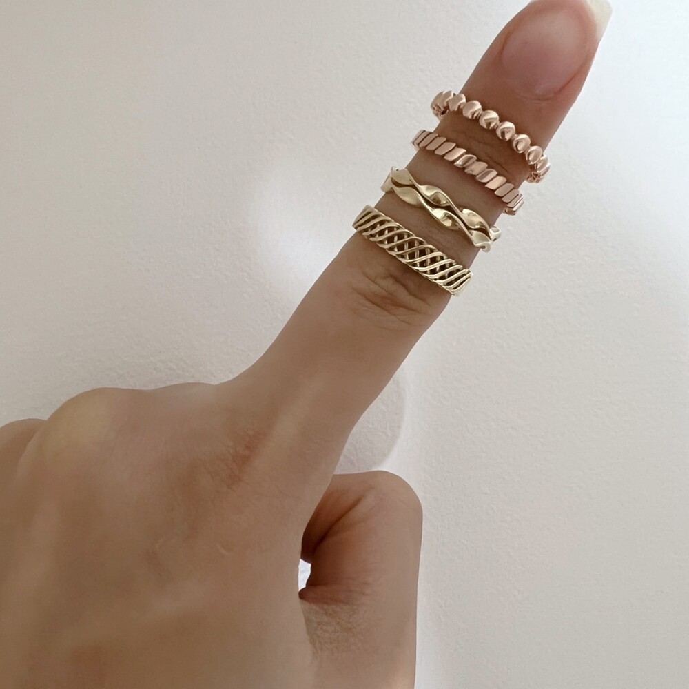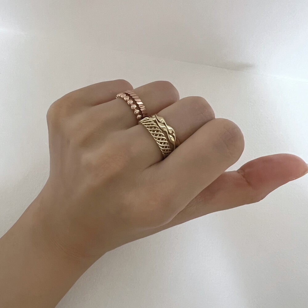 자잘한 타원형이 이어지는 베이직한 레이어드 반지
