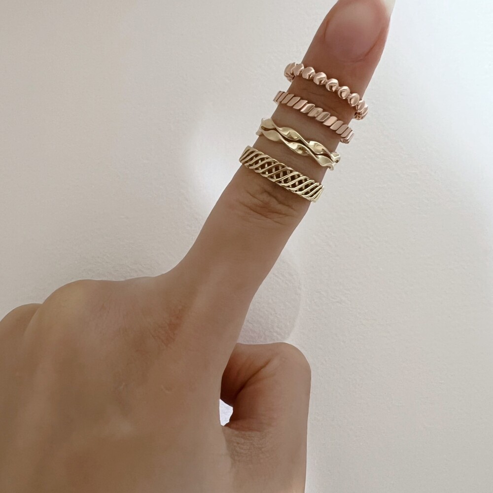 평행사변형 쉐입이 돋보이는 시크한 레이어드 반지
